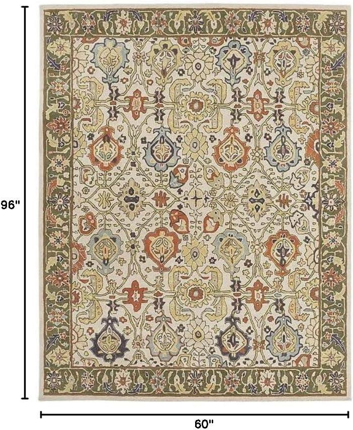 Light and movement change what draws your eye. Under radiant daylight the contrasts in the design sharpen; under warmer evening light the same areas mellow and seem to blend. Foot traffic compresses and lifts fibers in streaks, making darker accents momentarily more pronounced along common paths. Up close, dye saturation can look uneven in places and the wool’s natural fuzziness blurs the crispest edges of the pattern—small, human-scale details that reflect its handcrafted nature rather than machine-perfect uniformity.