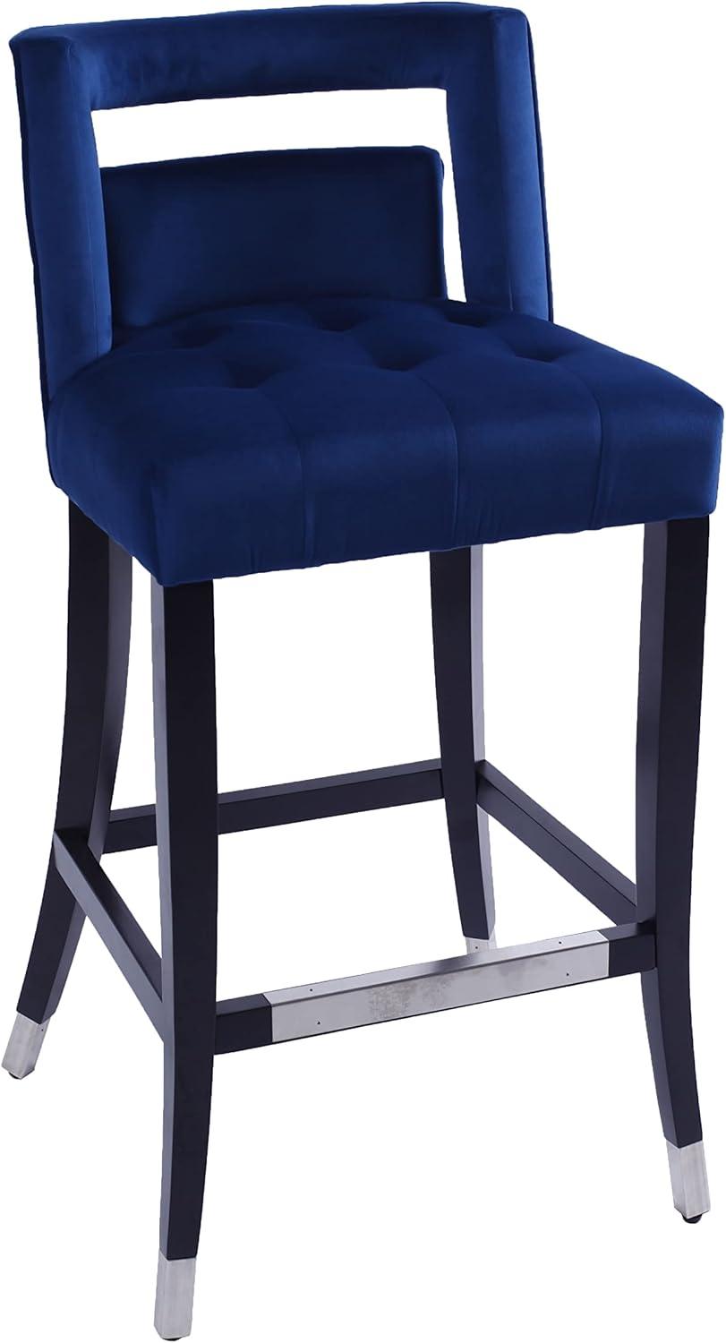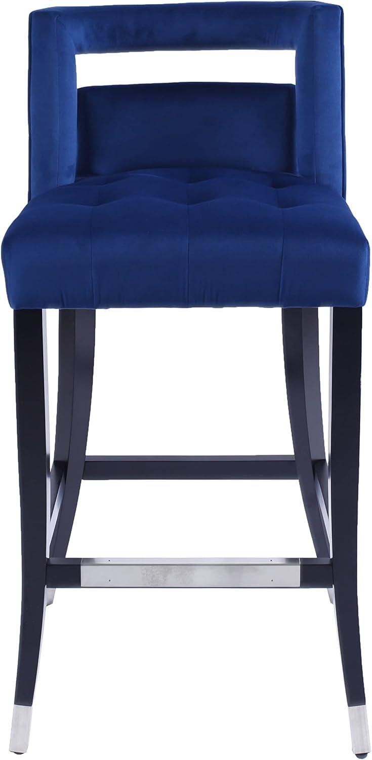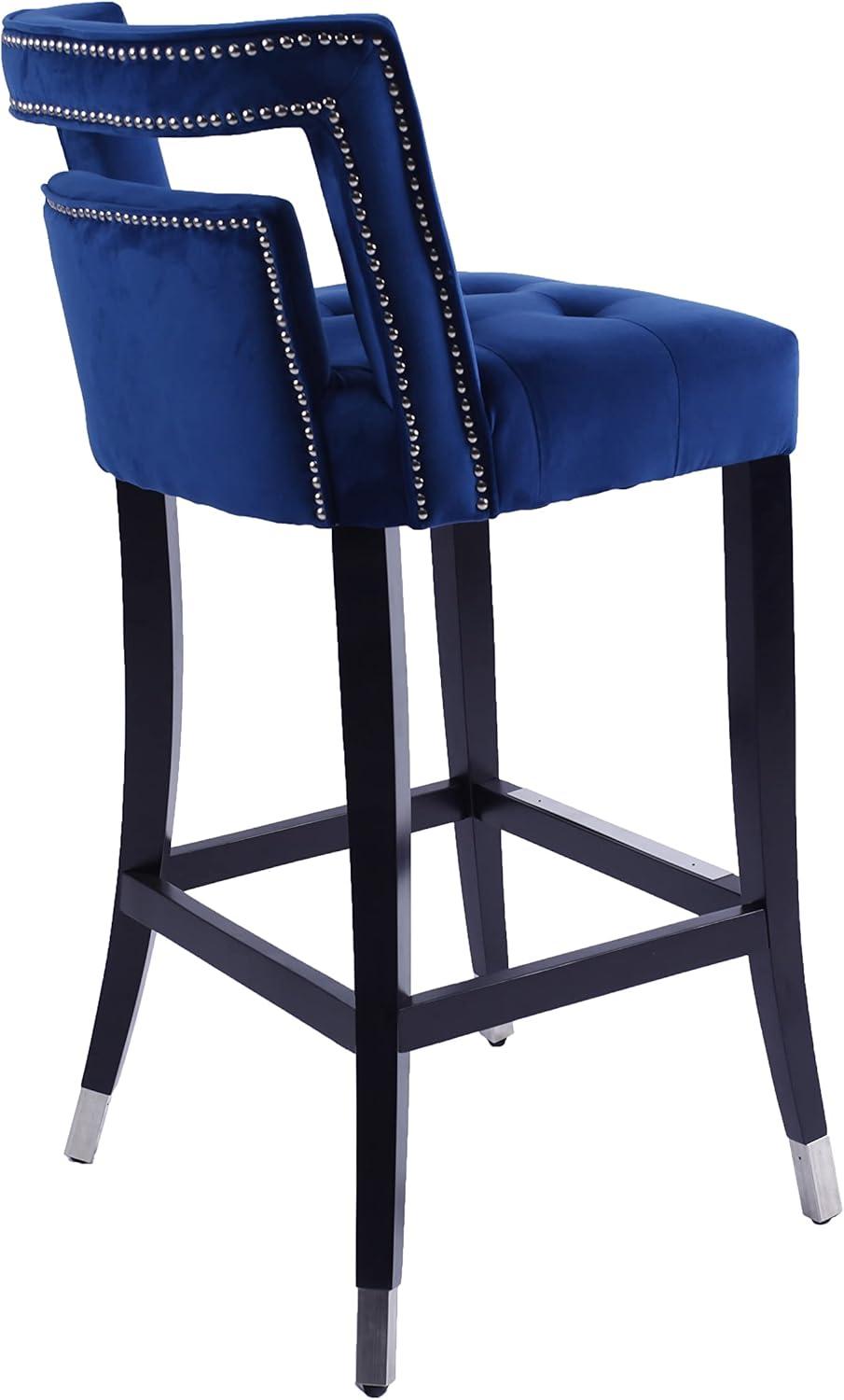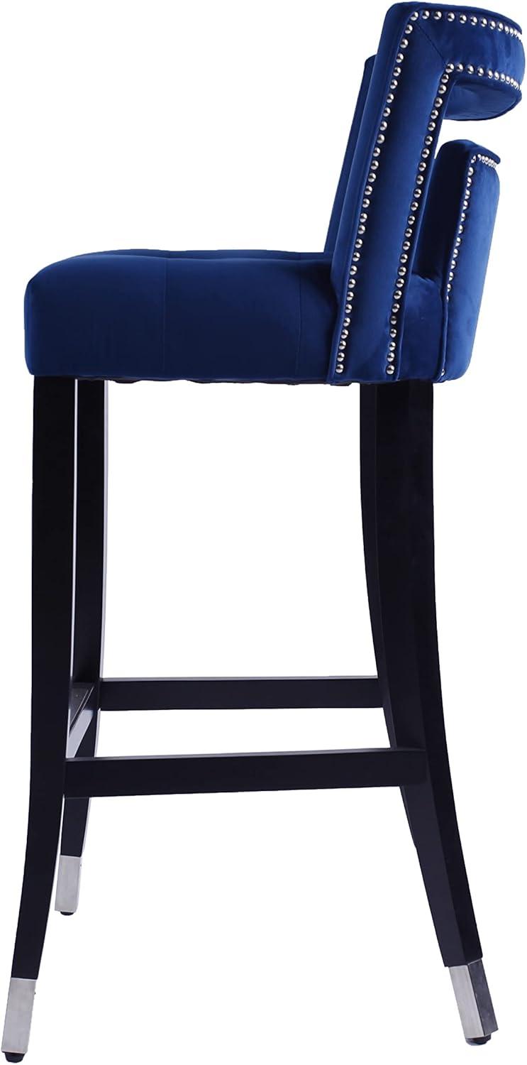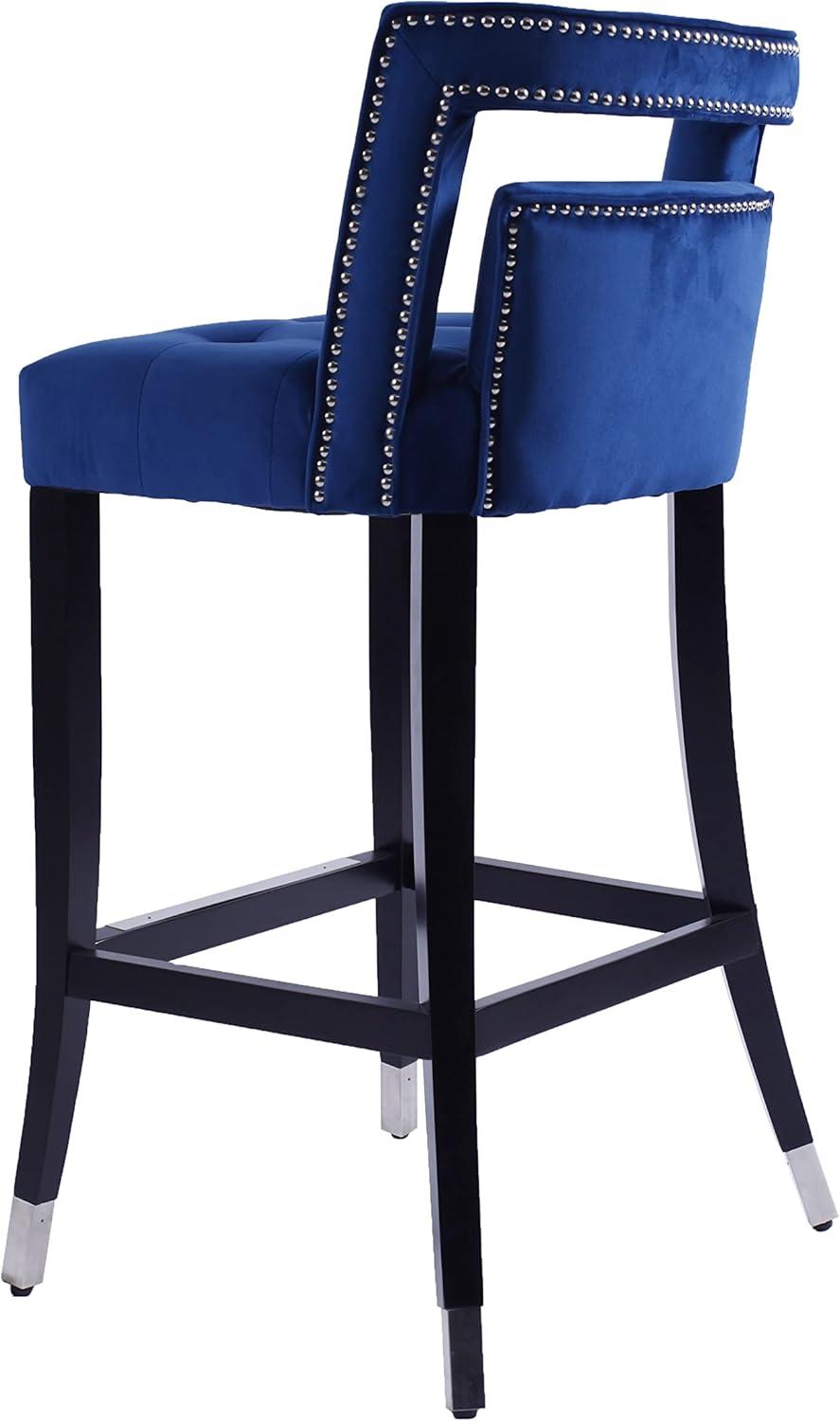 When the pair first arrives and you set them in place, they announce themselves quietly. The backs sit at a modest height that meets your line of sight from across the room, and the rounded seat and nailhead trim break up flat surfaces so the stools read as separate sculptural pieces rather than simply extra seating. Walk past them and the pile of the fabric catches the light differently depending on your angle; the surface can seem deeper in shadow in one moment and slightly lustrous the next. Placing both together tends to create a small visual anchor near the counter, while moving one on its own makes the piece feel more like an object you can bump against without filling the space.
