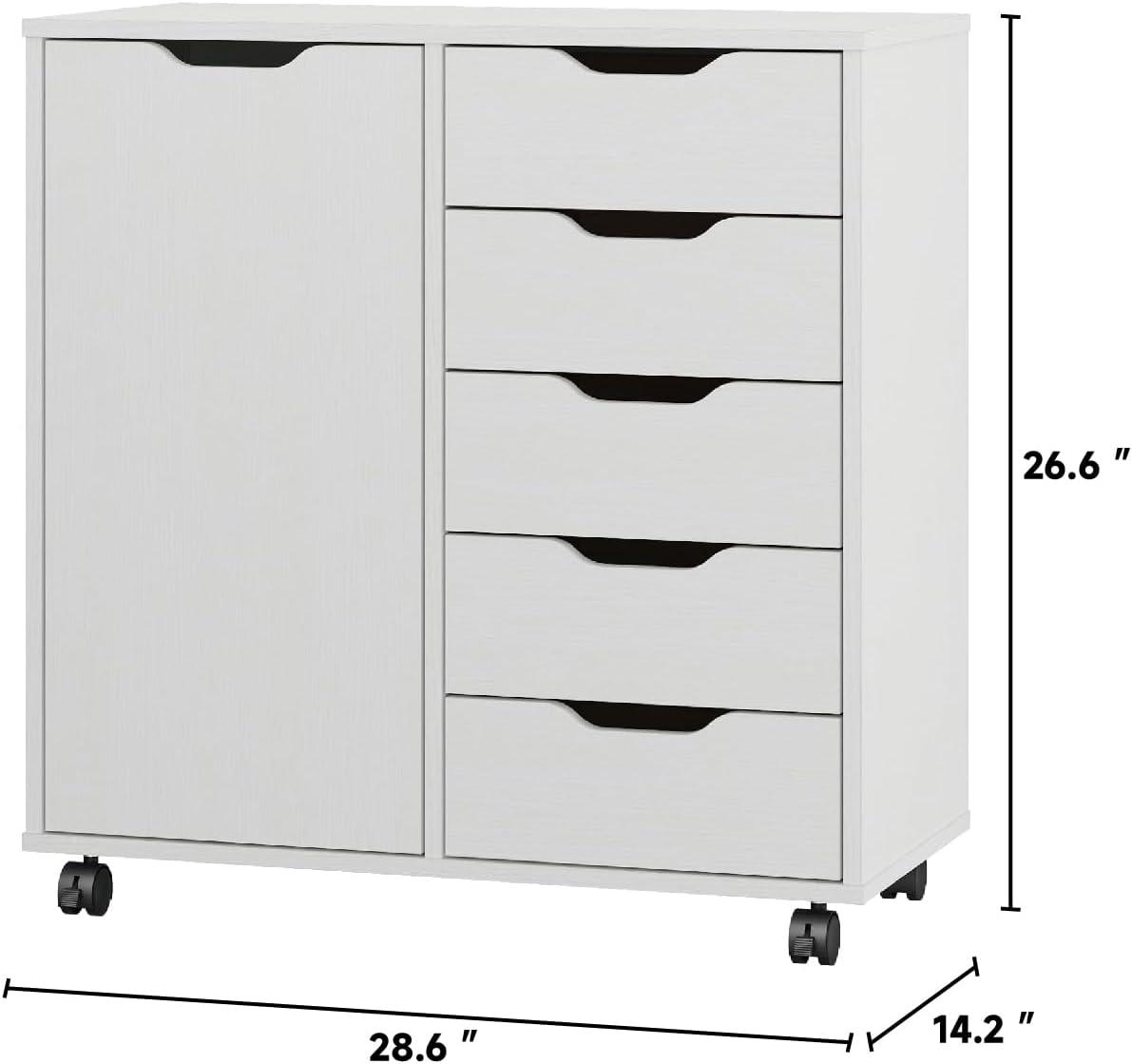 When considering this piece for office or bedroom settings, its compact yet highly functional design makes it adaptable for both environments.The five drawers alongside a two-tier cabinet door offer diverse storage options perfect for organizing office supplies, art materials, or personal items like cosmetics and accessories. Its wheels enhance mobility, allowing easy repositioning depending on your workspace or bedroom layout, while the locking mechanism ensures stability when stationary.Assembly requires some patience, ideally with two people and a drill, but the clear instructions and precise craftsmanship contribute to a durable and sturdy final product that holds up well to daily use.