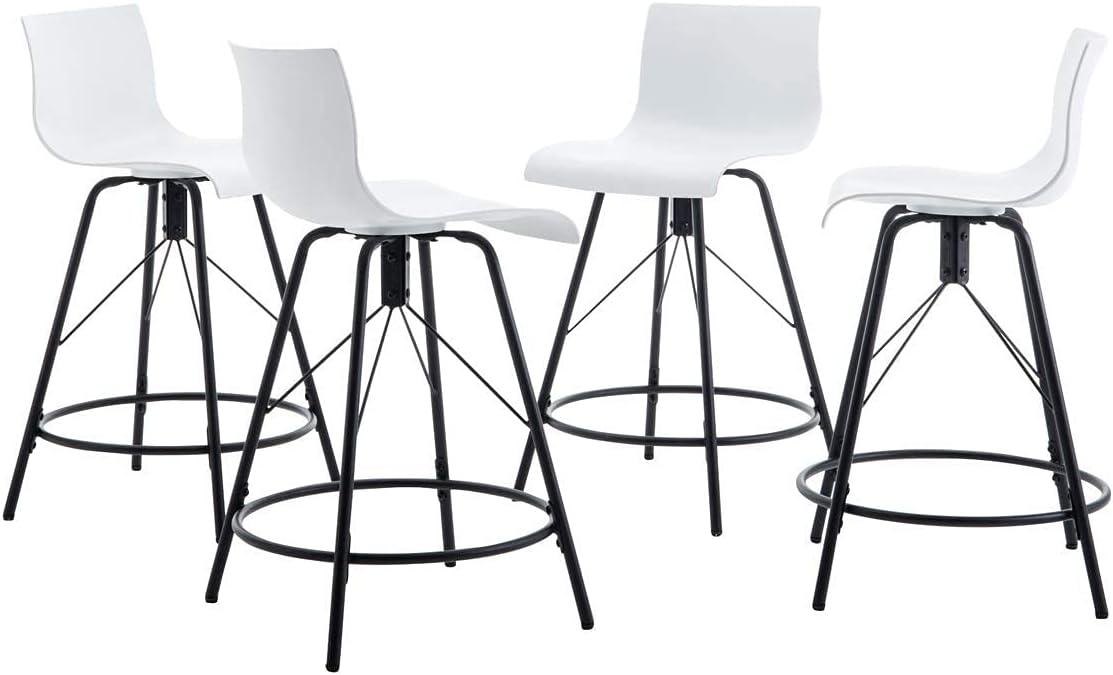 The plastic seats are lightweight yet surprisingly durable, making cleaning a breeze – just a quick wipe-down and they look fresh again. Adding to the comfort, the circular footrest ring at a convenient height offers a relaxed spot to rest your feet, making these stools feel more like cozy chairs rather than typical barstools. The modern white finish brightens up any kitchen or bar area, and assembling all four was straightforward and hassle-free.