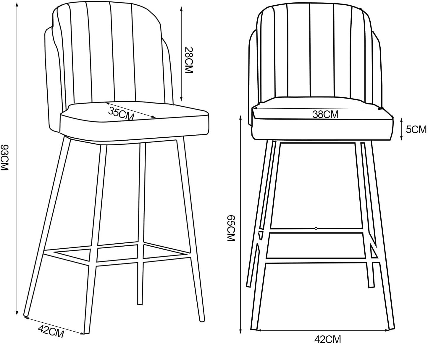 The counter height and seat dimensions offer an excellent balance between comfort and practicality. The 38cm wide velvet seat, cushioned with thick padding, creates a cozy spot to relax whether we’re enjoying a quick coffee or catching up with friends. Its dimensions (35x38x65cm) make it versatile enough for various spaces – from kitchen islands to home bars and café counters. This functional height combined with sleek design means the stools not only fit seamlessly into many decor styles but also invite longer, comfortable seating sessions without feeling cramped.