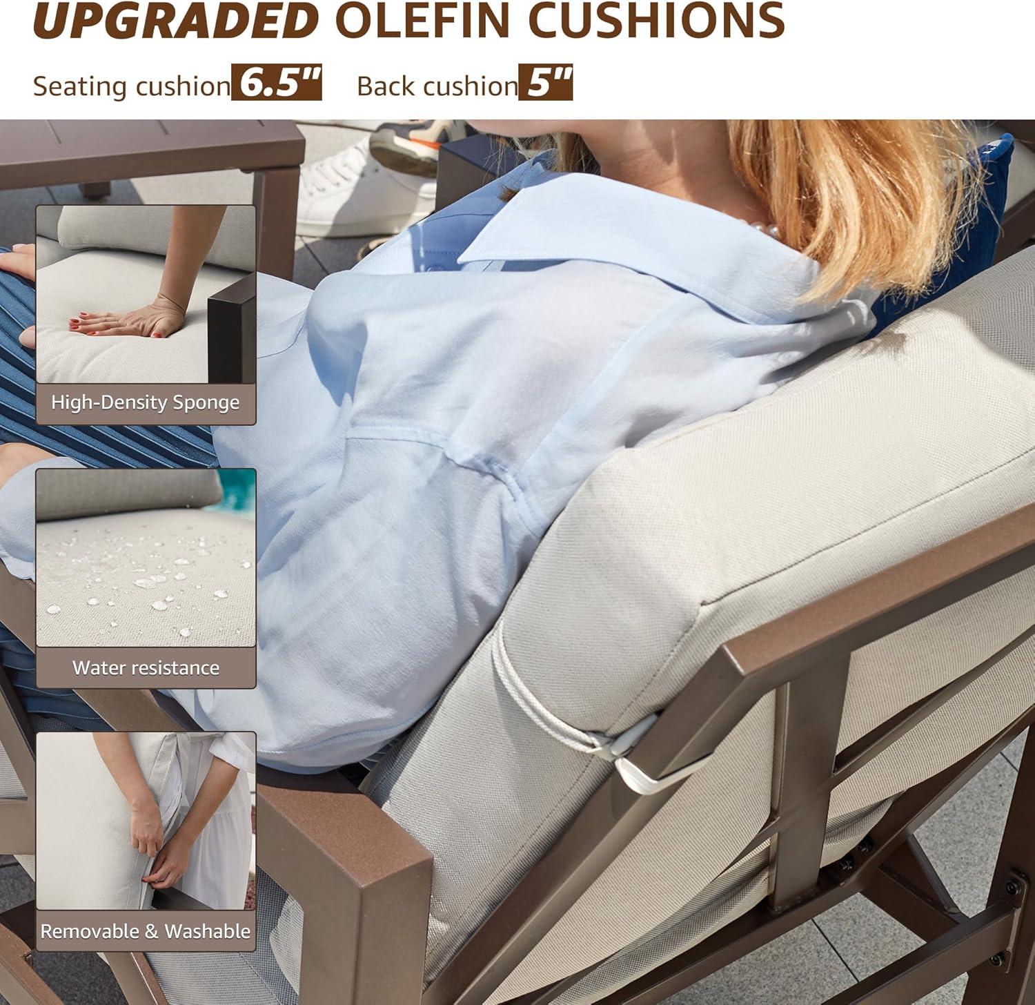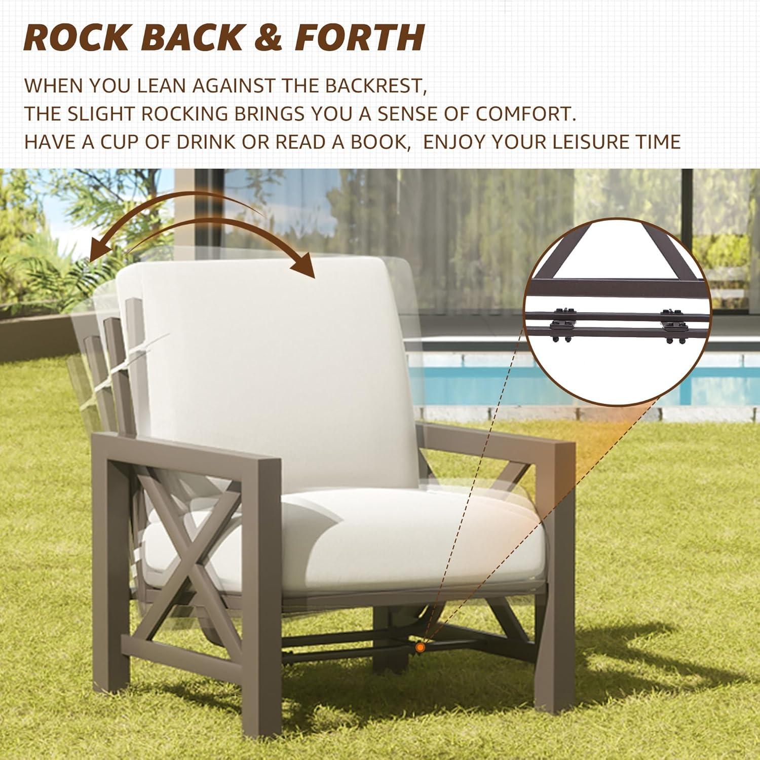 We appreciate how this outdoor set blends modern elegance with practical design, making it a versatile choice for anyone wanting to refresh their outdoor living space. The sturdy metal frame, complete with rust-resistant powder coating, ensures durability in various weather conditions, while the unique X-shape handrails and backrests add a stylish touch you won’t find in many other sets. The wide, deep seating paired with 6.5″ thick Olefin cushions offers superior comfort, inviting you to relax longer without sacrificing support. The rocking chairs provide a smooth, gentle motion perfect for unwinding, making this set ideal for socializing or quiet moments by the pool, porch, or garden.
