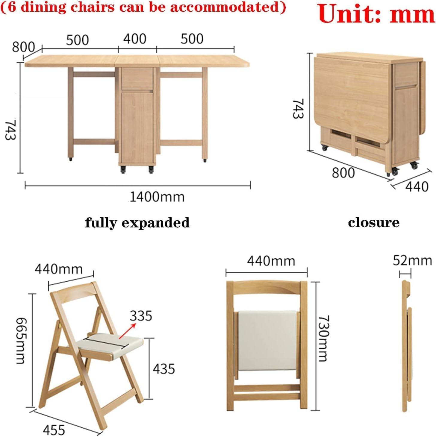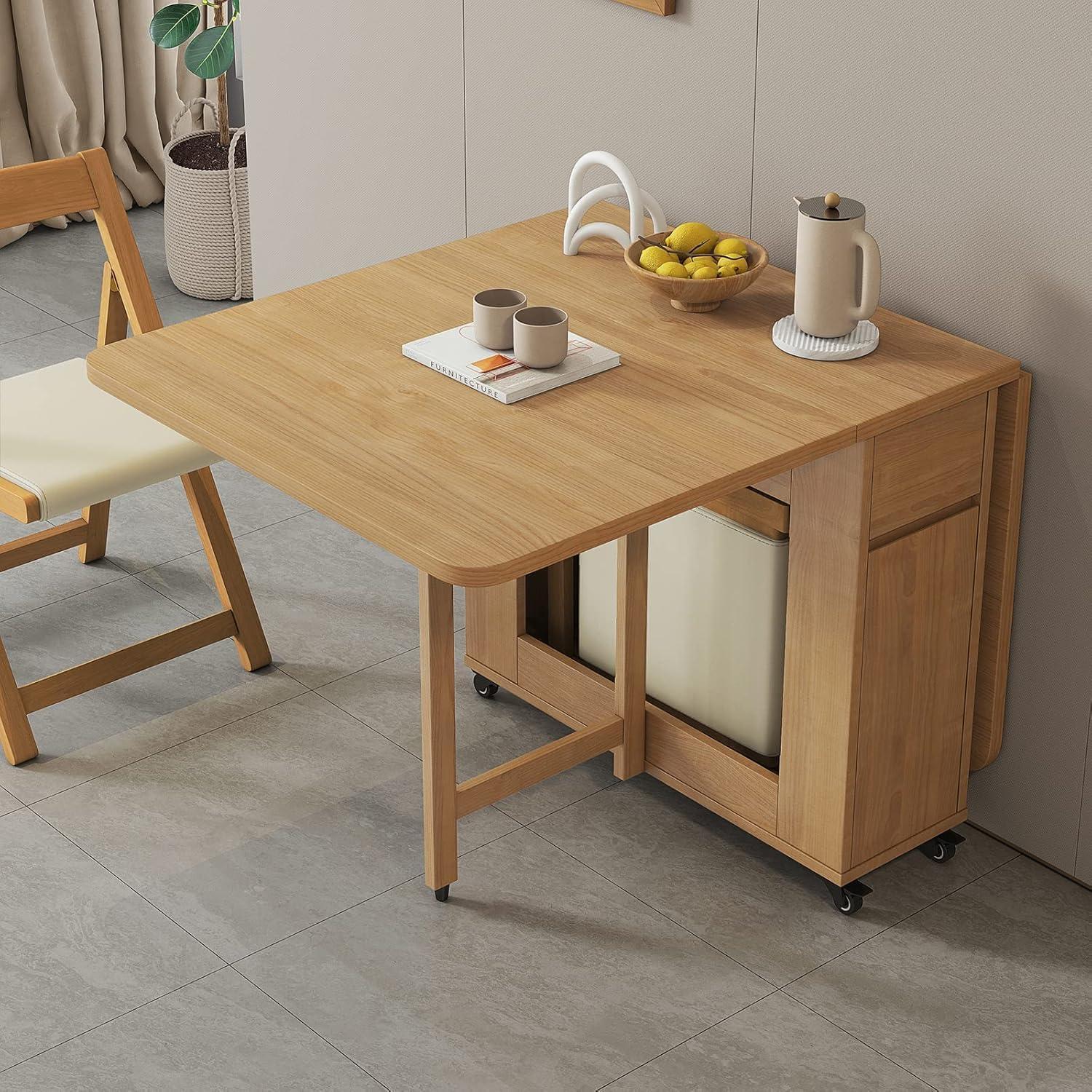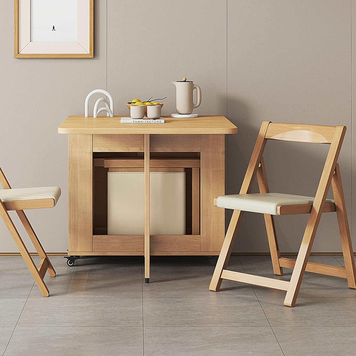 Beyond its convenient expansion, the design thoughtfully integrates storage for the 6 solid wood folding chairs right in the center, keeping our room uncluttered and organized. The sturdy construction combined with 4 universal wheels ensures mobility and stability, while soft-close mechanisms and polished edges contribute to safety for everyday use. Whether placed in a kitchen,living room,or even a restaurant setting,this set’s versatility shines through: