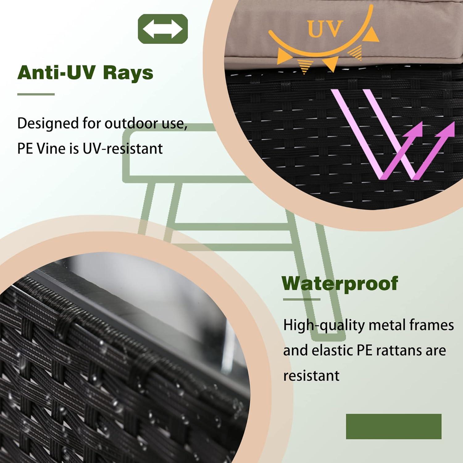 Durability blends seamlessly with comfort here. The weatherproof rattan combined with a sturdy rust-proof steel frame means you can rely on this set to maintain its form and feel despite exposure to the elements. We appreciate how the cushions are thoughtfully designed to be kept indoors when not in use,which helps preserve their softness and vibrant appearance. The balance of softness and resilience truly elevates your outdoor experience, turning any yard or poolside space into a cozy retreat.