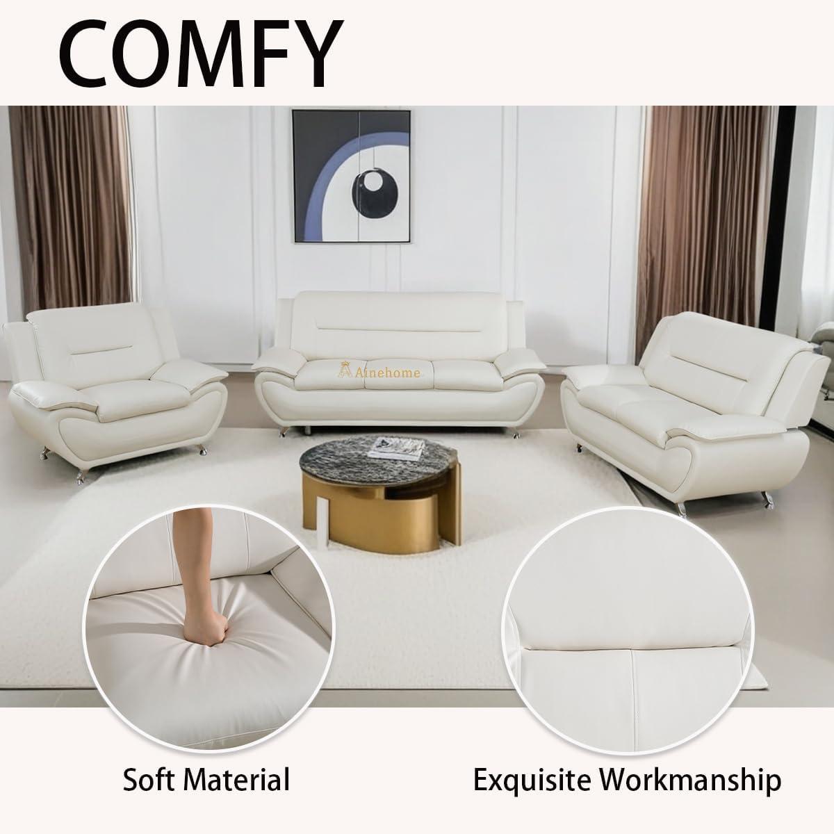 After spending some quality time with the Ainehome Sectional Sofa Sets in Creamy White,we’ve gathered our thoughts on what worked and what didn’t. This modern faux leather couch brings a lot to the table, but as with any piece of furniture, there are a few trade-offs worth considering. Here’s our balanced breakdown: