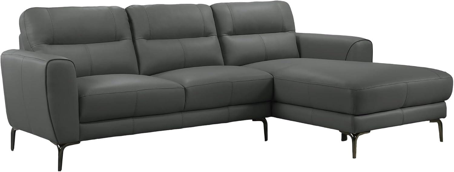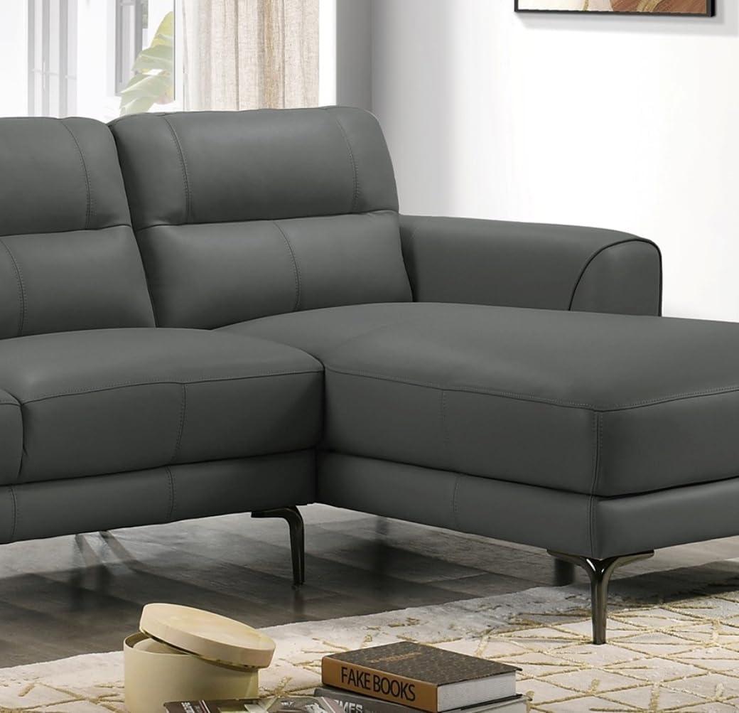 Combining modern aesthetics with durable craftsmanship, this sectional set brings a sleek and elegant look to any living space. Upholstered in rich top grain leather with an elegant anthracite gray finish, it offers a refined yet versatile presence that complements both contemporary and classic interiors. The sectional’s tight seat and back cushions maintain a clean, structured silhouette, ensuring it holds its form over time without sacrificing comfort. Its two-piece configuration includes a right-facing chaise and a left-facing sofa, providing a smart layout that maximizes seating without crowding the room.