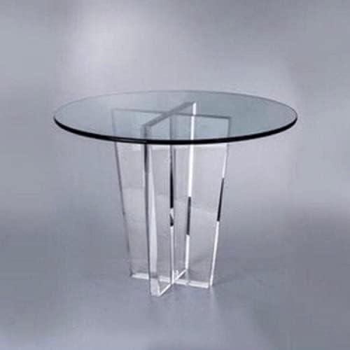 The legs are crafted from 20 mm thick acrylic sheets, which have been precisely cut, sanded, and expertly glued together to form a robust cross-shaped base. This meticulous process not only enhances the durability but also ensures stability across various surfaces, from living rooms to garden patios. The structural integrity of the acrylic legs supports the 23.6″ diameter round top without any wobbling, making the table reliably sturdy for daily use. The clarity of the acrylic material adds a modern, almost floating affect that complements the table’s minimalist appeal.