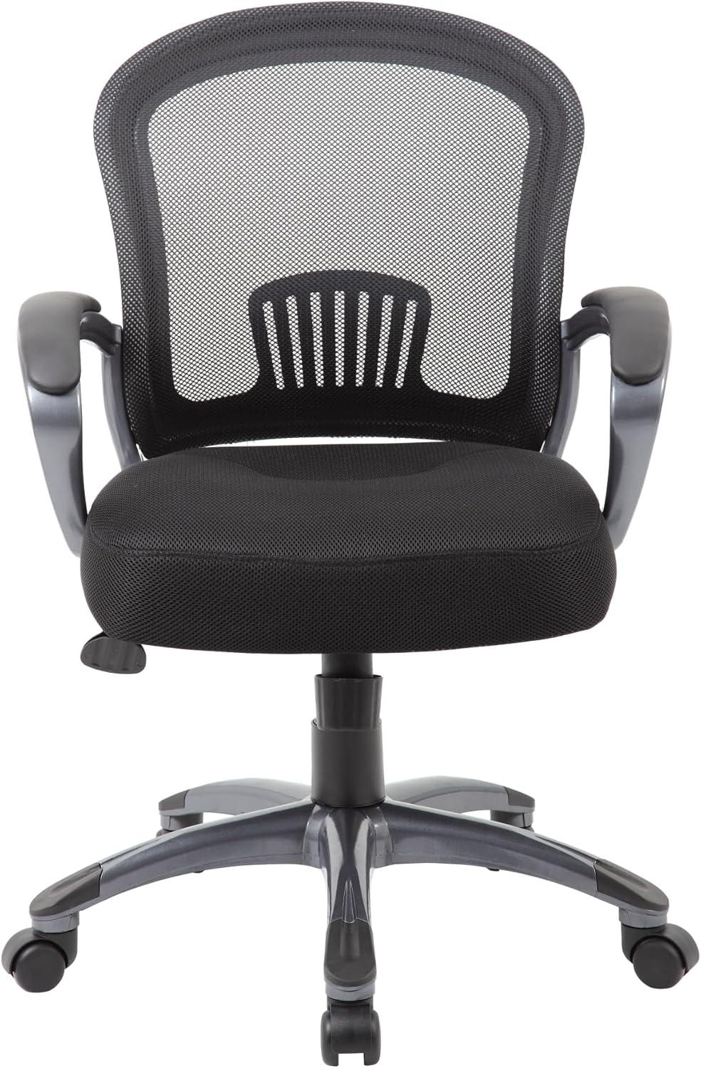 Combining comfort with a sleek, professional look, this ergonomic task chair is an excellent fit for both our home office and workspace needs. the mid-back design offers reliable lumbar support, complemented by loop arms padded with plush Black CaressoftPlus material, ensuring hours of comfortable seating without strain.Its breathable mesh construction paired with a 4-inch padded seat enhances airflow and cushioning - perfect for staying cool during long workdays. The pneumatic gas lift allows us to easily customize the seat height, adapting to various desk setups and promoting better posture.