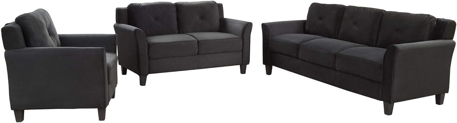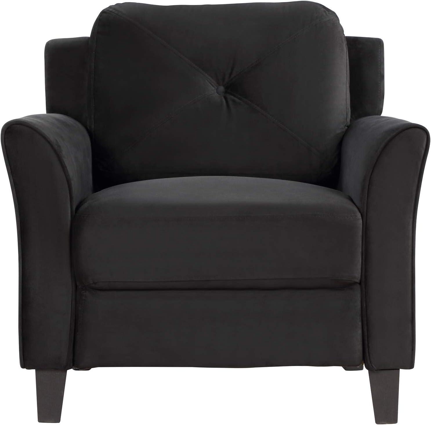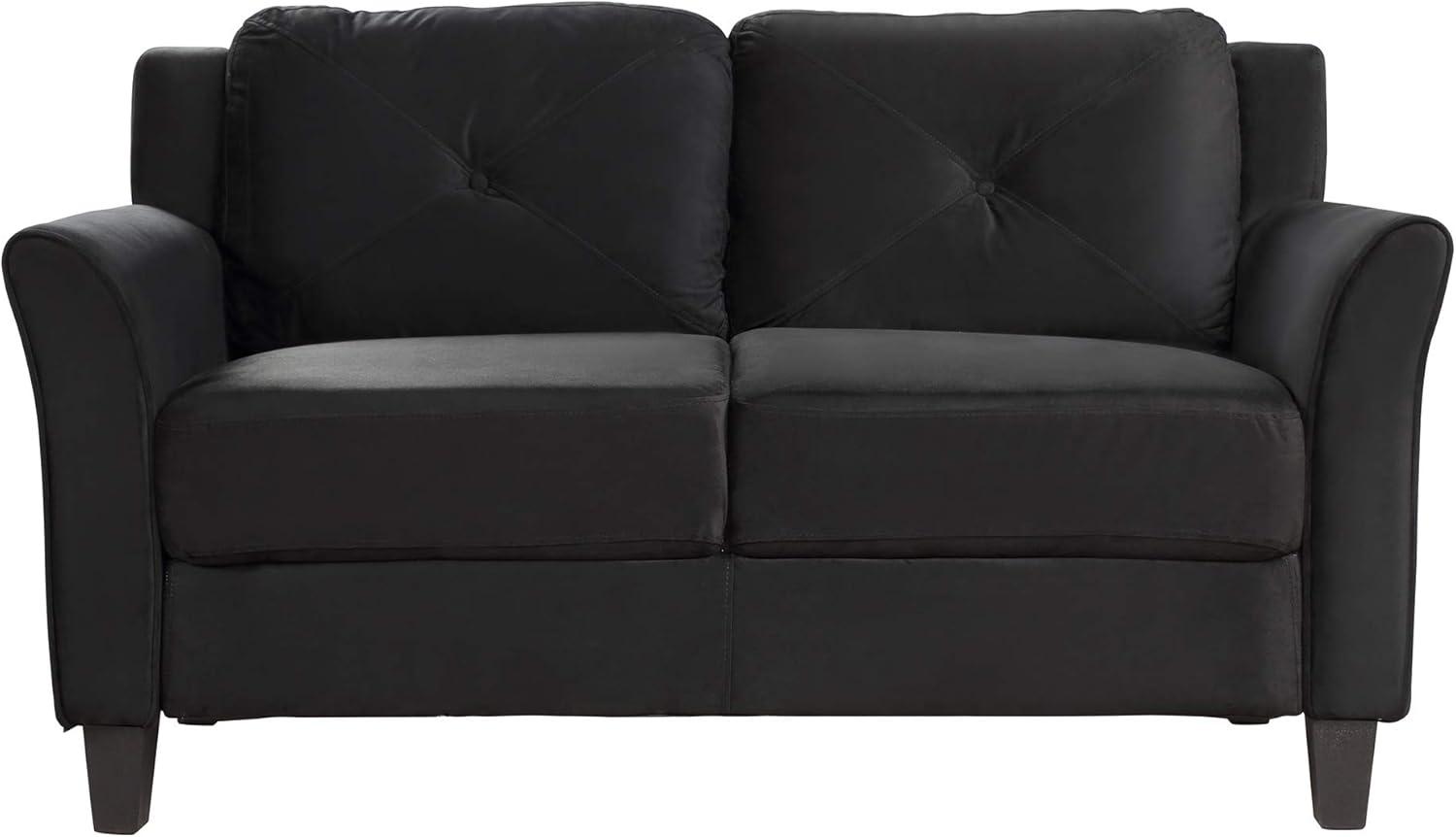 - Design: Timeless tufted and rolled arm styling with black plastic legs