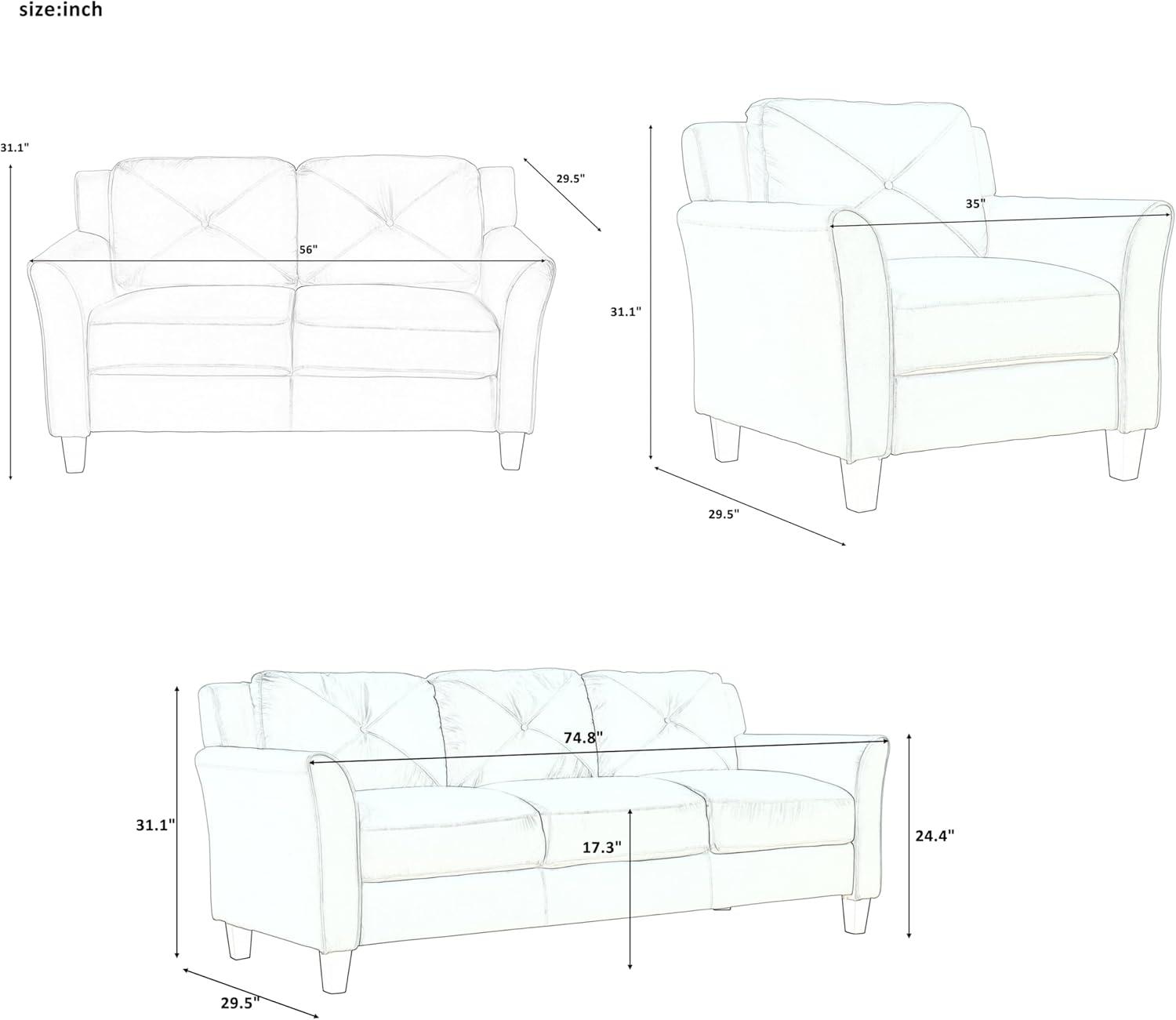 What truly caught our attention are the detailed touches that blend both style and practical comfort. The button-tufted cushion backs paired with flared arms create a timeless look, while the plush foam filling offers a cozy retreat after a long day.We especially appreciate the thoughtfully designed rolled arms that increase comfort without compromising on elegance. Beyond aesthetics, the inclusion of side pockets on the loveseat and armchair adds a convenient storage solution for remotes, magazines, or small essentials, keeping our space neat and organized effortlessly.