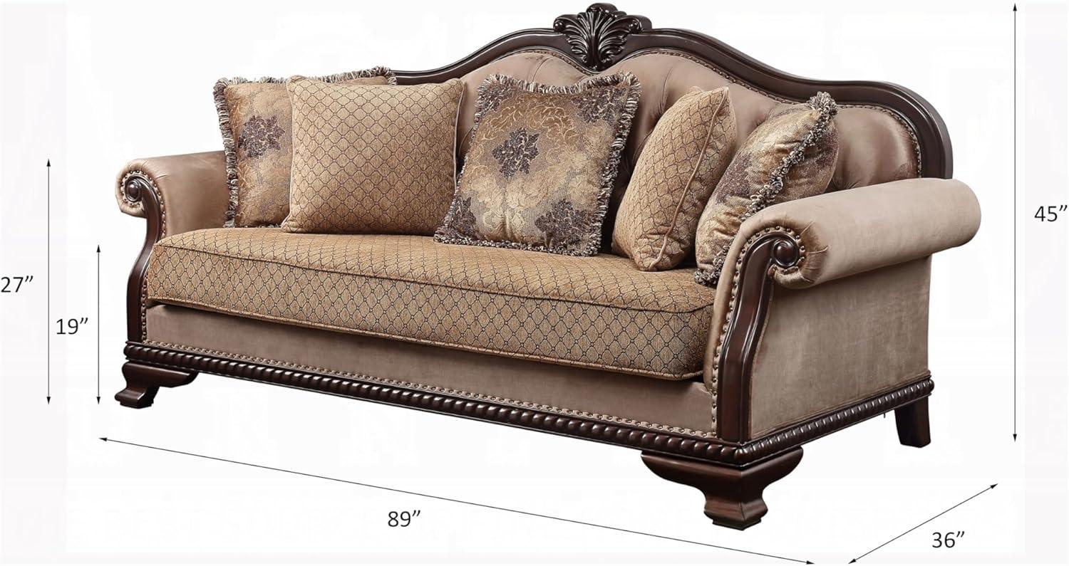- Design Features: Tufted cushions, floral pillows, nail-head accents.