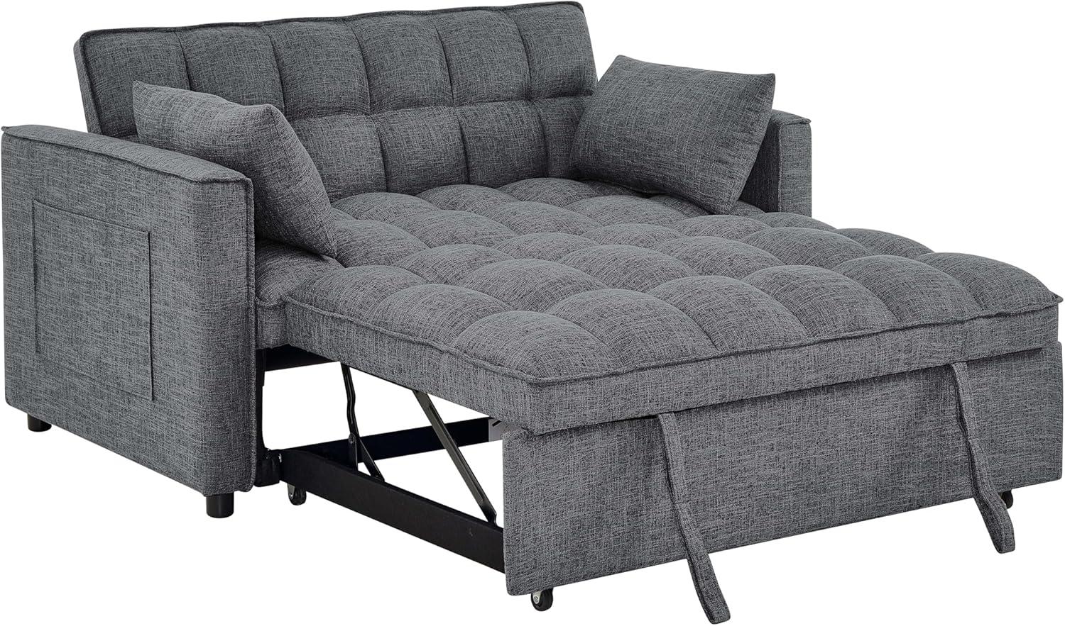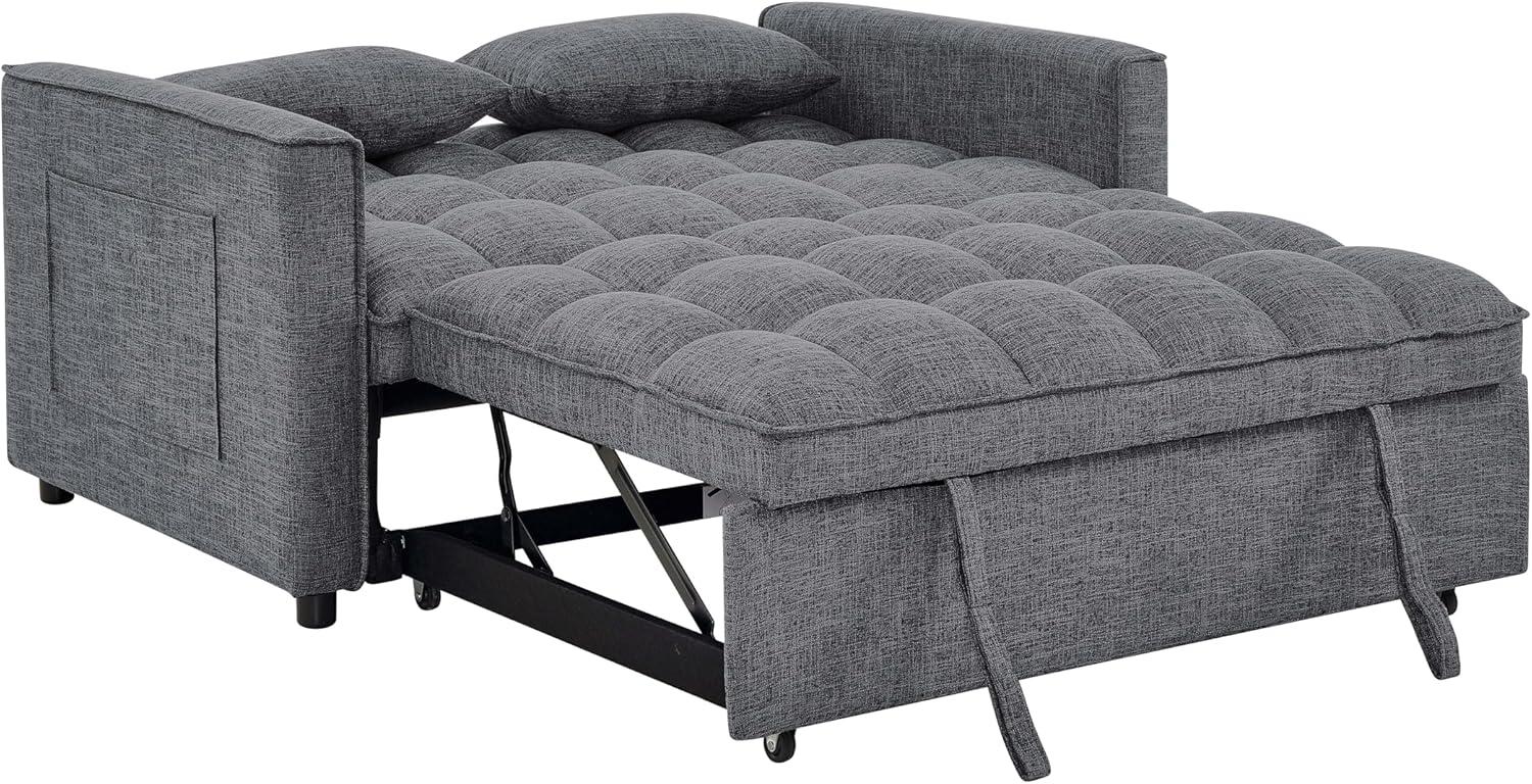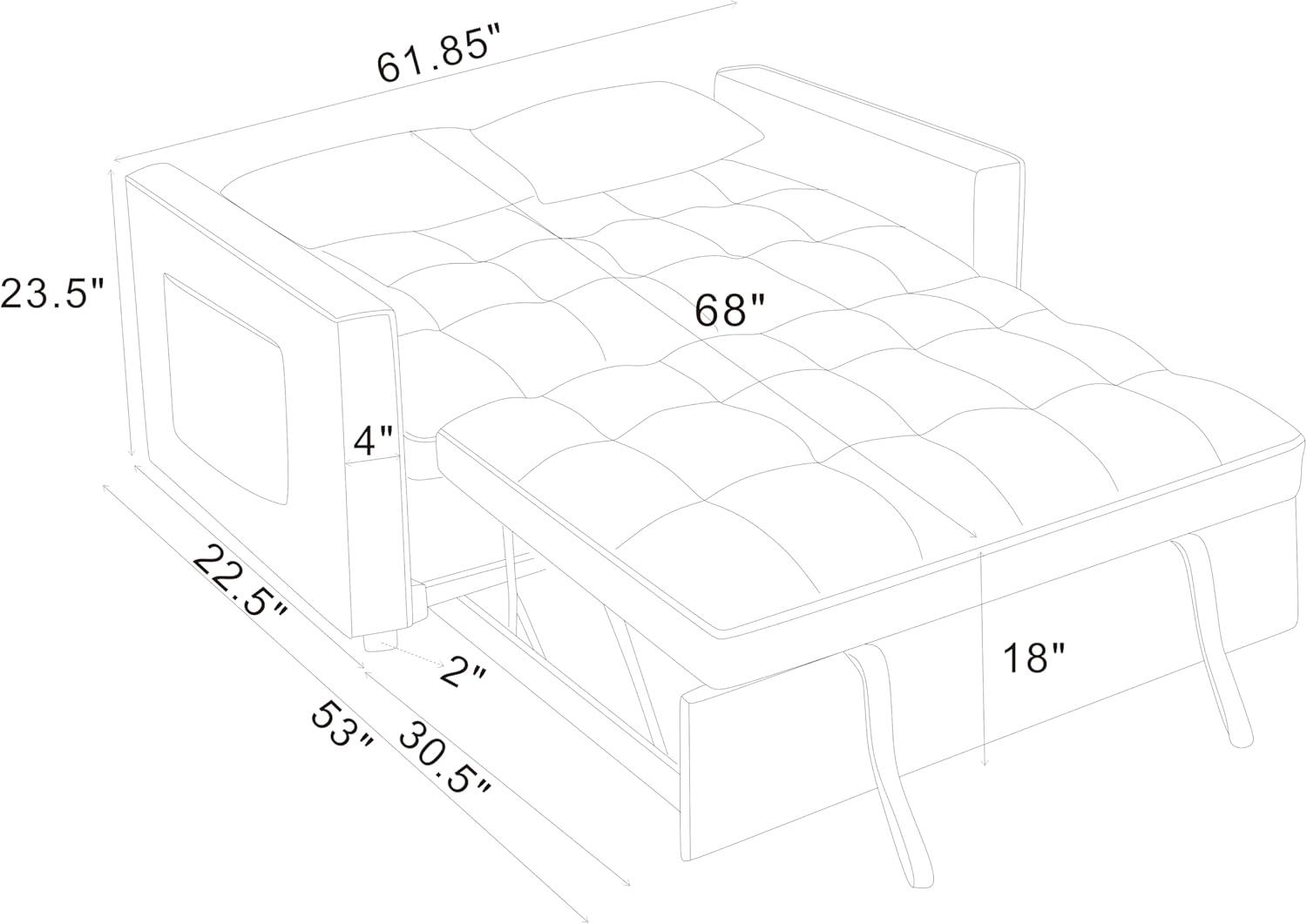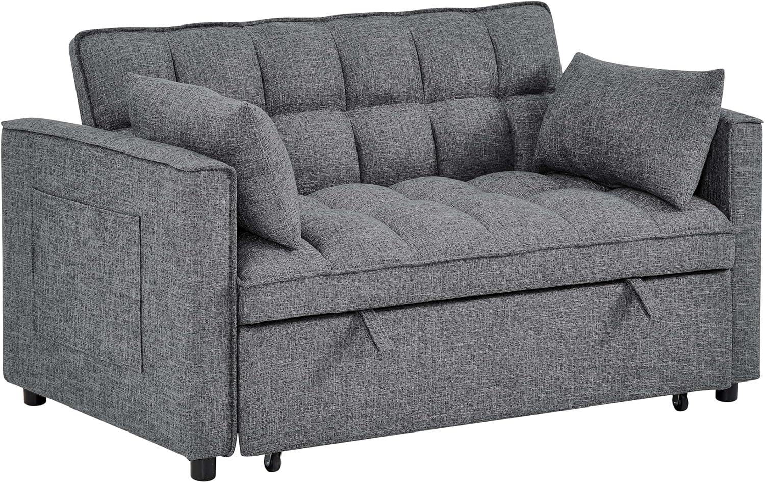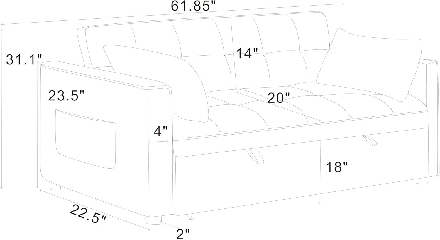 Blending modern style with practical functionality, this loveseat pull-out sleeper is an ideal fit for compact living areas. Its clean-lined silhouette and square armrests add a sleek, contemporary touch without overwhelming the room.upholstered in soft linen fabric and featuring a tufted design, it offers a subtle elegance that complements various décor styles. Notably, the loveseat’s compact dimensions (61.85″W x 34.5″D x 31.1″H) make it perfect for apartments, studios, or cozy bedrooms where maximizing space is key.