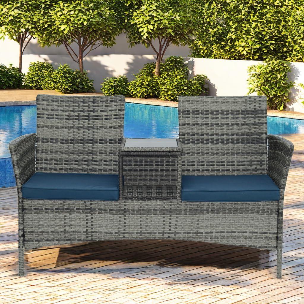 Discover more and see if it fits your outdoor vibe by exploring the product here: Check out the Grey-Blue Patio Loveseat Set with Table on Amazon.