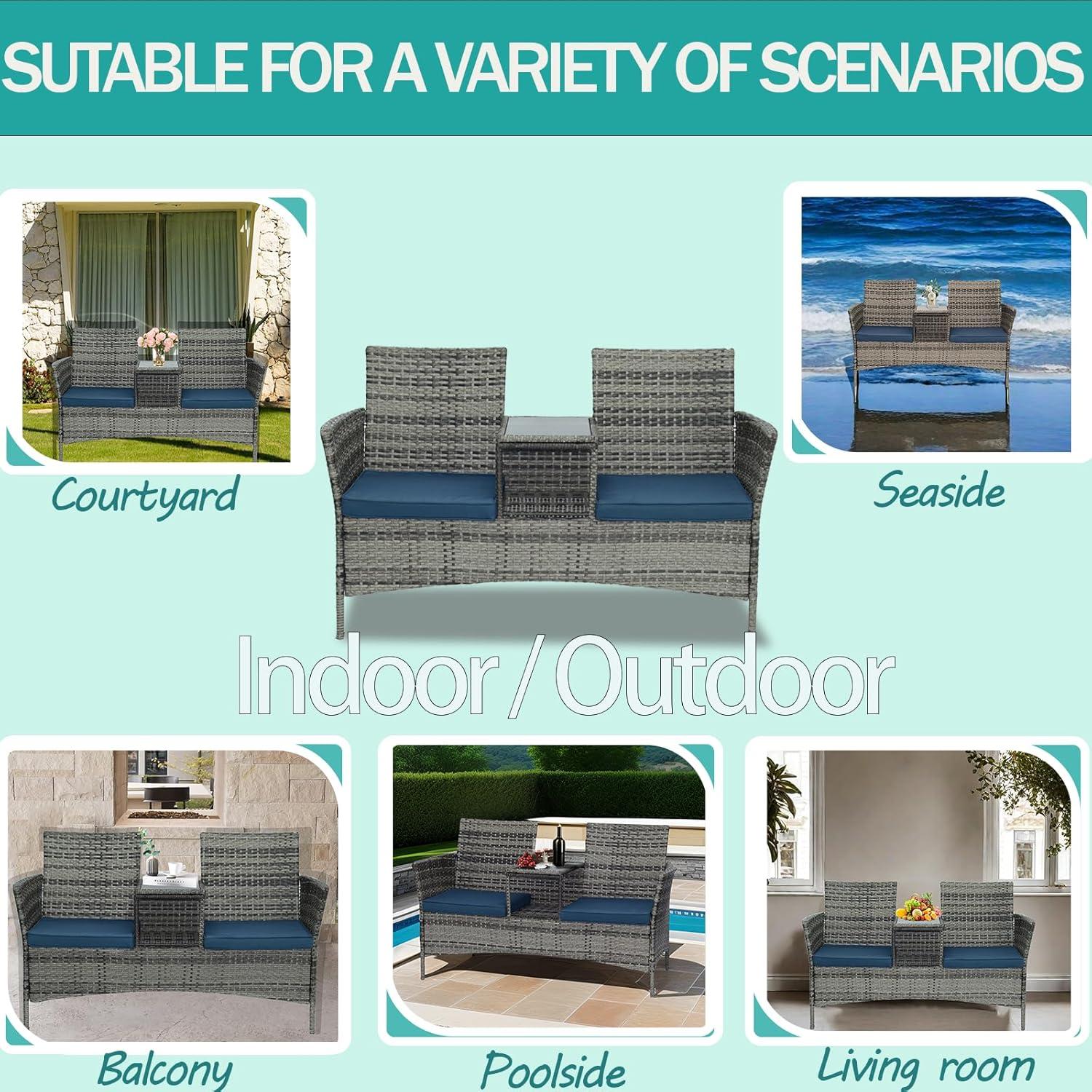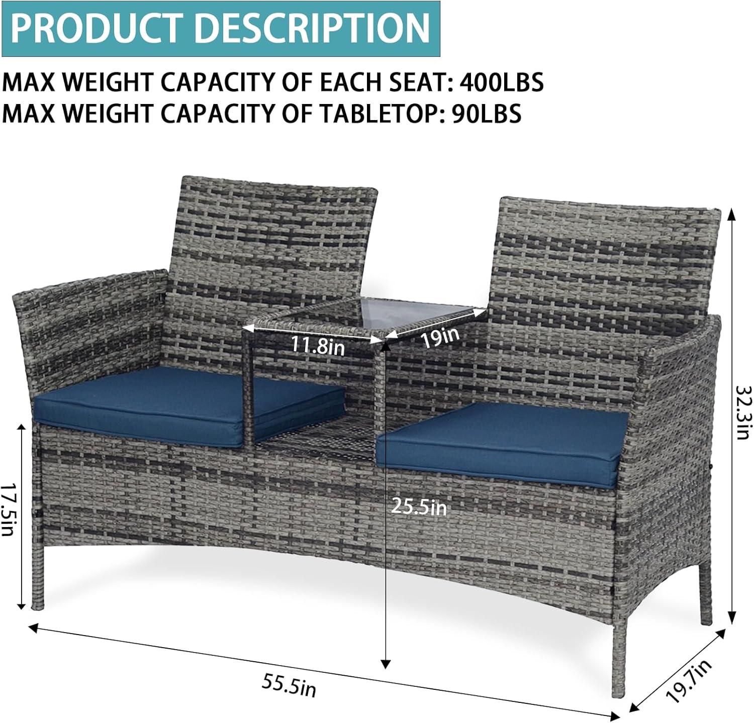 After spending some quality time with the Grey-Blue Patio Loveseat Set with Table, here’s what we think about its strengths and areas where it could use some improvement: