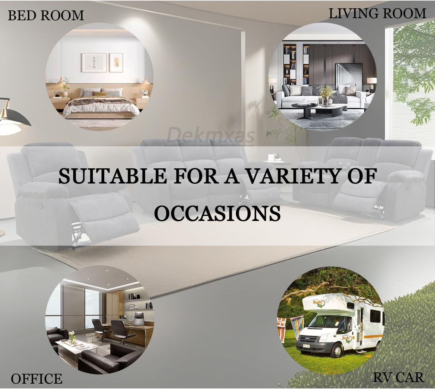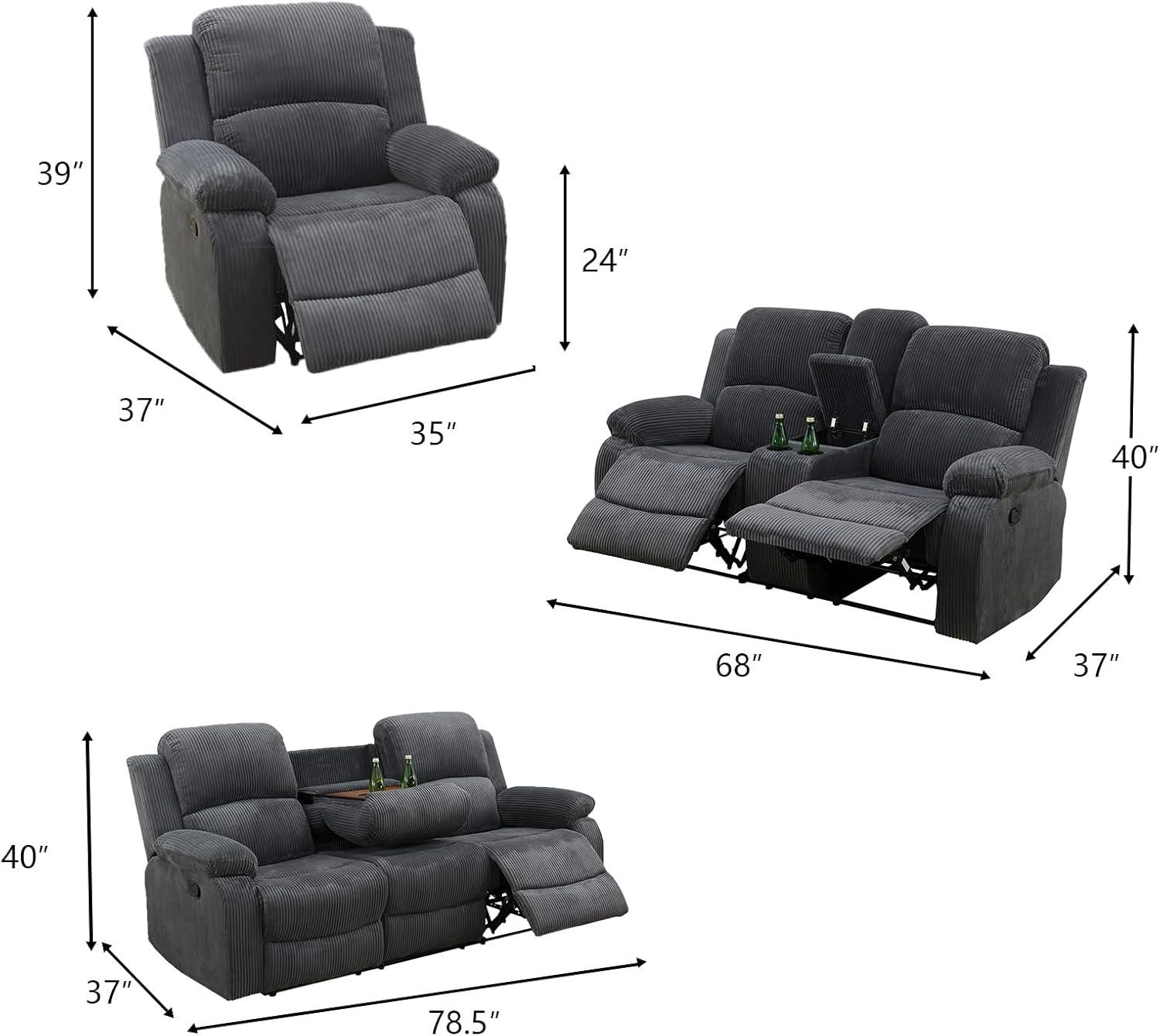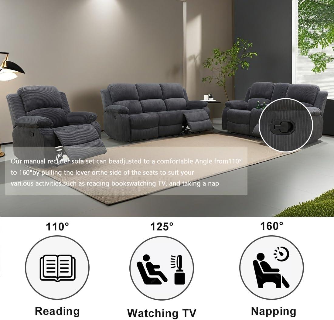 From the moment we unboxed the pieces,it was clear this set strikes a solid balance between style and functionality. The manual reclining mechanism operates smoothly with a simple lever,allowing each reclining seat to adjust independently,perfect for personalized comfort. We especially appreciated the dual cup holders and storage console integrated into the loveseat and sofa, making it incredibly convenient for living room or office use. The high-quality fabric resists wear and fading, keeping the modern grey tone fresh and clean even after months of use. Assembly took less than an hour, thanks to clear instructions and well-organized parts stored efficiently inside each piece.