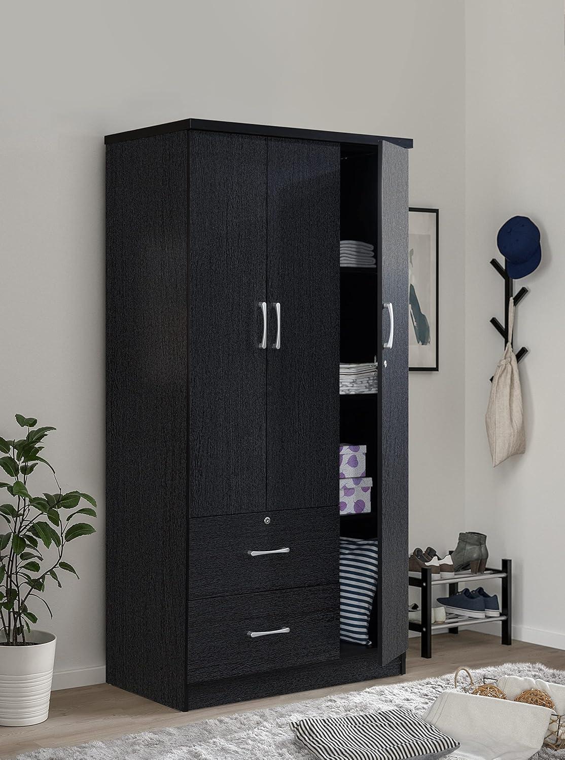 After spending considerable time with this armoire, we find it strikes an excellent balance between style and function. The combination of a sturdy wood and engineered wood construction offers durability that suits everyday use, while the sleek silver-tone handles add a touch of modern elegance. Its three doors open to reveal a garment rod that’s perfect for keeping wrinkle-prone clothing crisp and ready to wear.Alongside, two spacious drawers on smooth metal runners provide ample room for storing accessories or undergarments, effectively reducing clutter.The three adjustable shelves add versatile storage options,whether for folded clothes or organization baskets,making it a practical addition to bedrooms with a contemporary vibe.