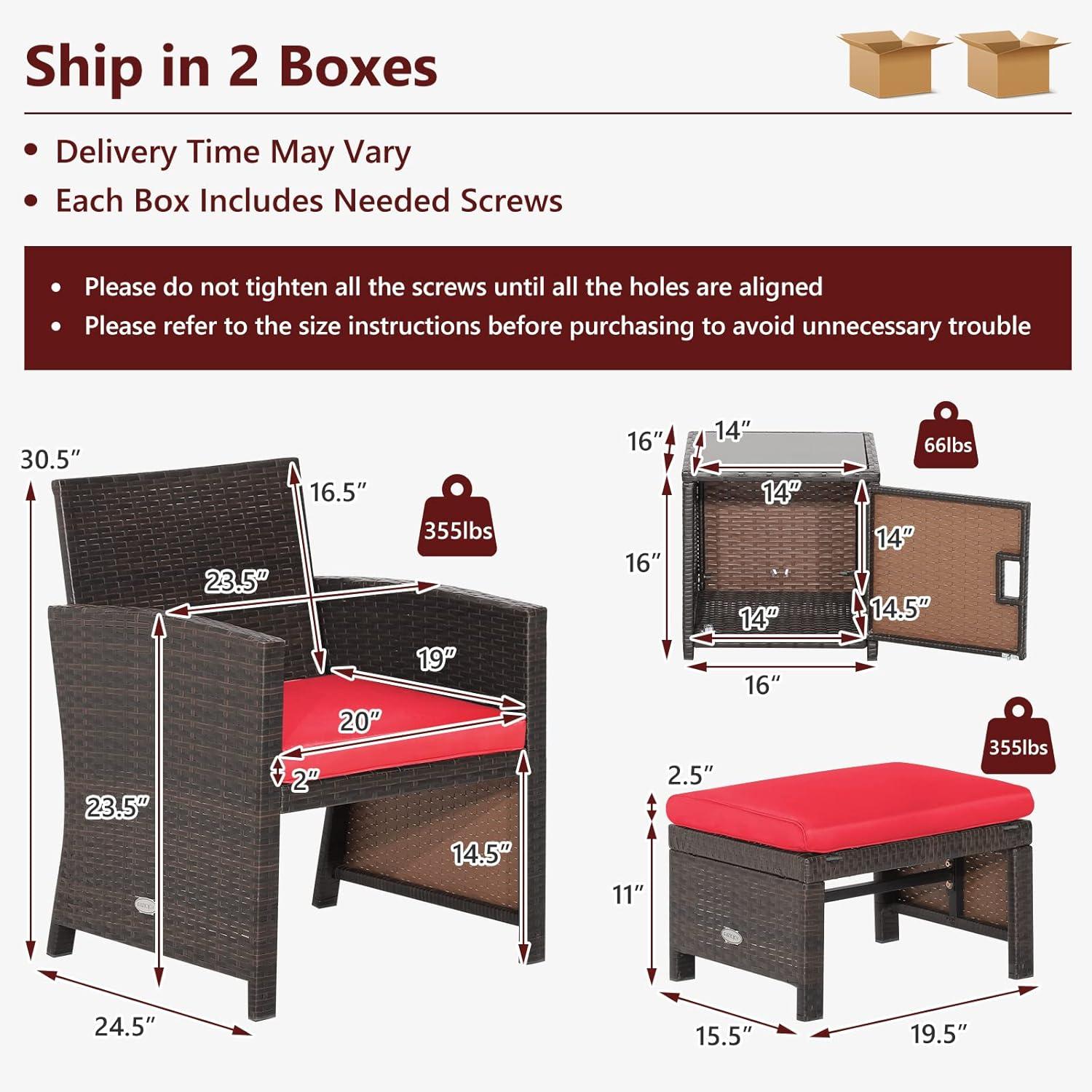 Right out of the box, the vibrant red color instantly catches our eye, adding a bold splash of style to any outdoor setting. The blend of weather-resistant PE rattan woven over a sturdy metal frame gives off a elegant yet durable vibe,perfect for garden,porch,or balcony use. We appreciate how the set marries functionality with aesthetic appeal-each chair features ergonomic backrests and ample seating space for comfort, while the ottomans complement the overall look, doubling up as additional seats or space-saving side tables tucked neatly underneath. The tempered glass coffee table topped with suction-secured glass not only elevates the design but provides a practical spot for drinks and snacks during a relaxing conversation.