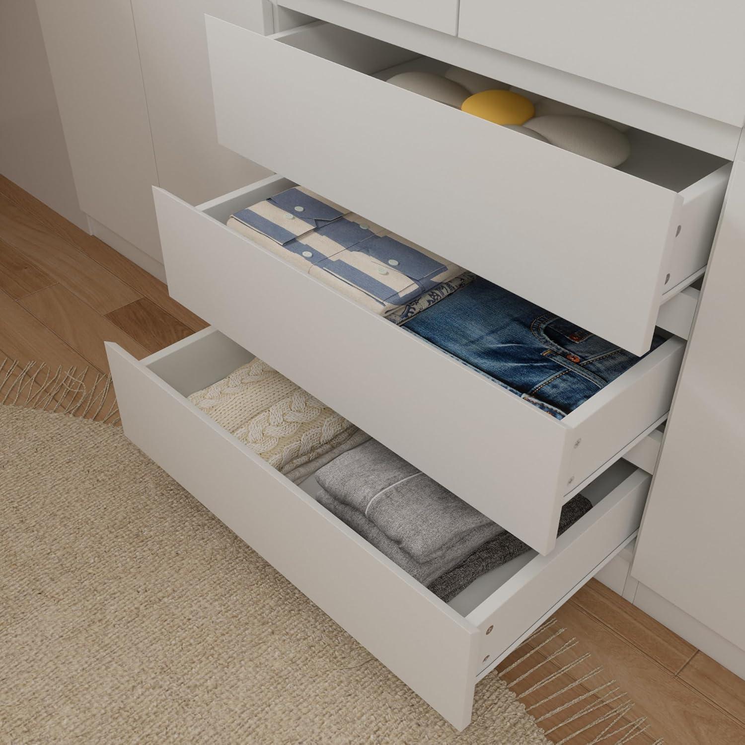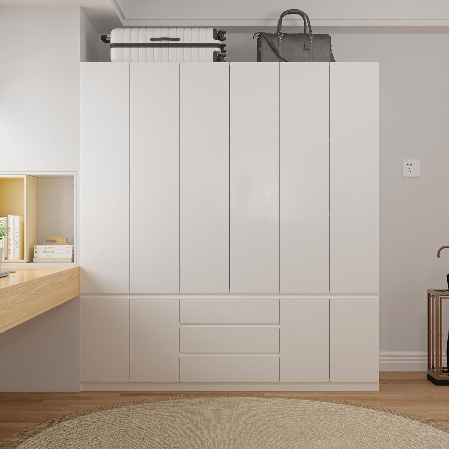 We found that the sleek white finish of this wardrobe instantly elevated the ambiance of our bedroom, creating a clean and calming atmosphere.Its handleless design adds a minimalist touch, reflecting a modern European elegance that harmonizes beautifully with both rustic and contemporary décor.The smooth, waterproof surface not only looks stunning but proves practical in daily use-easy to wipe down and resistant to scratches, it keeps our space looking fresh and tidy without much effort.