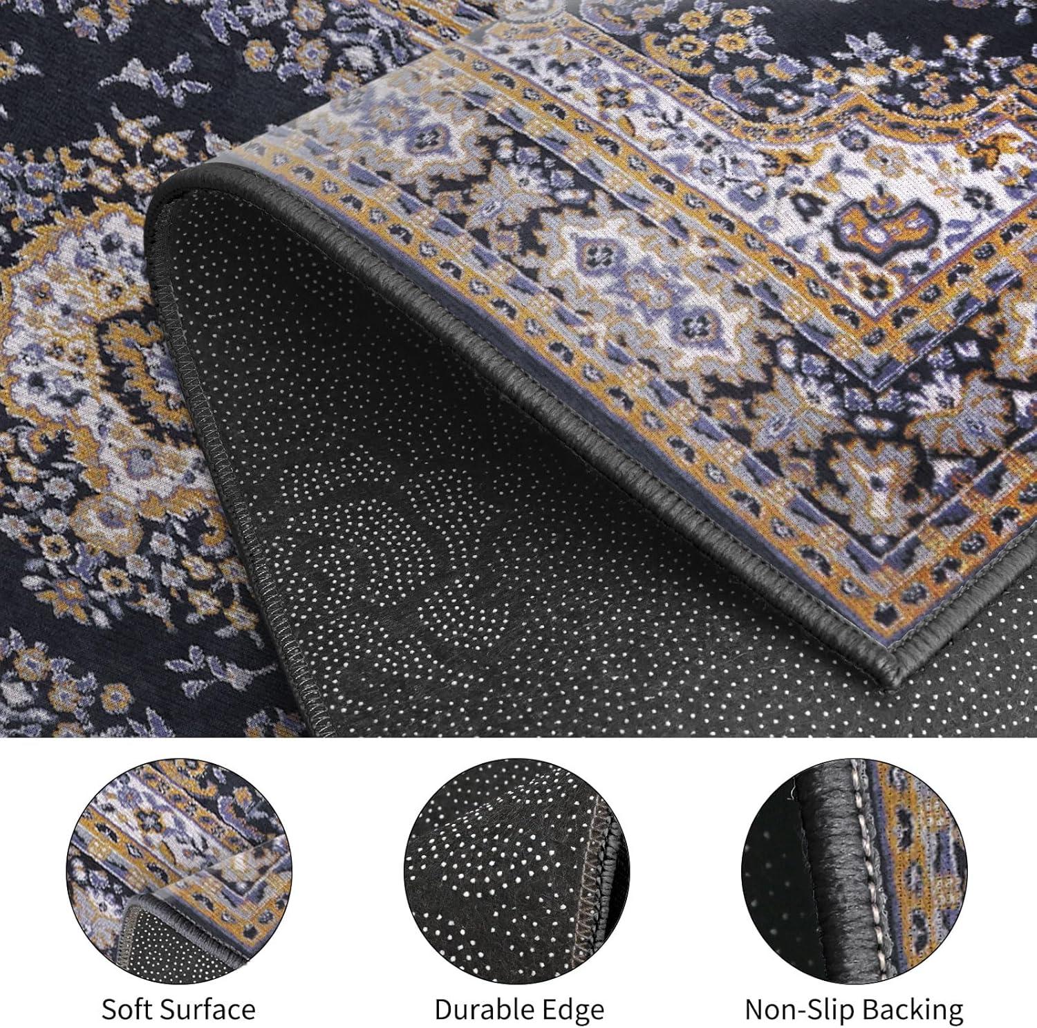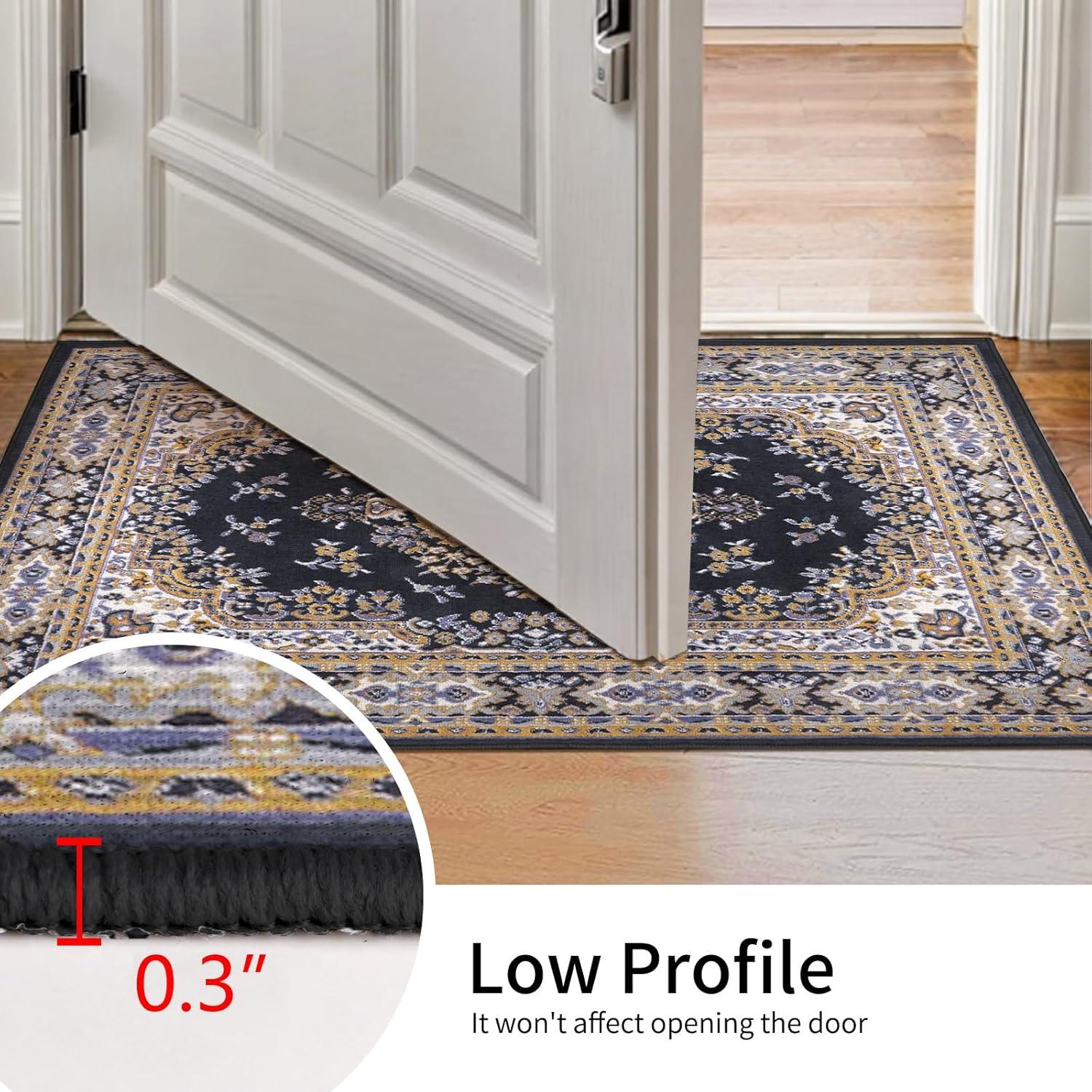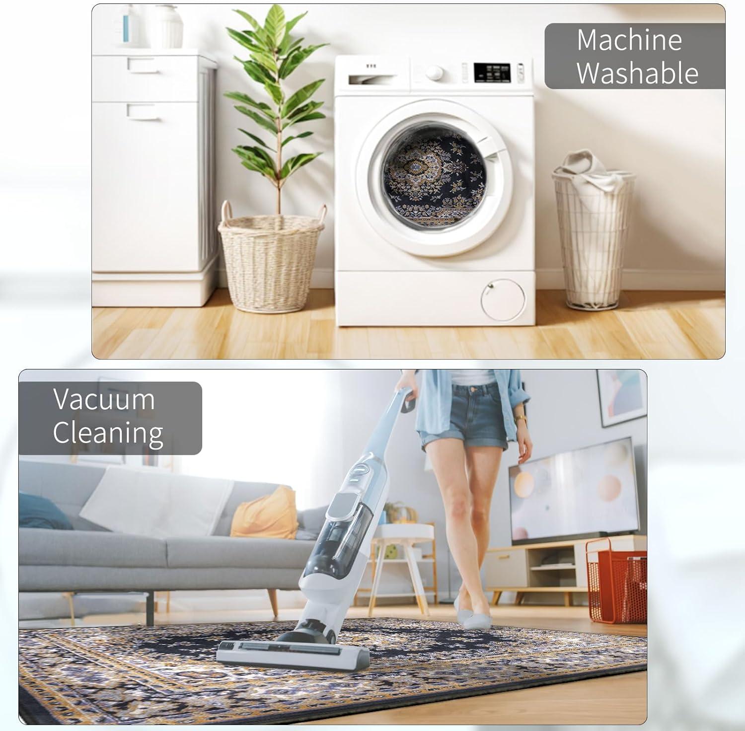 This compact piece elevates diverse décor styles with its vintage Bohemian patterns and rich navy blue tones. its 2’x3′ size makes it incredibly versatile, fitting naturally in tight spaces such as entryways, cozy nooks beside beds, or compact kitchen corners. We found that this rug complements ethnic, rustic, and eclectic interiors especially well, adding a layer of texture and color without overwhelming the room. Thanks to its low profile and non-slip bottom,it integrates easily under doors and around furniture while keeping safety top of mind,making it ideal for busy family homes.