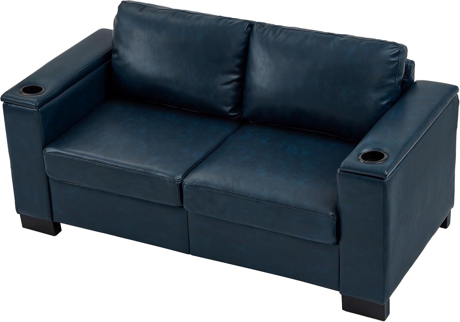 Bringing this navy blue PU leather loveseat into our living space has been a seamless blend of style and practicality. Its plush,high-density foam cushions make lounging for two incredibly comfortable without sacrificing support,perfect for everything from morning coffee to evening relaxation. The built-in cup holders and cleverly designed hidden storage under the seat are features that truly elevate day-to-day convenience, keeping essentials like remotes and magazines within easy reach while maintaining a clean, uncluttered look.
