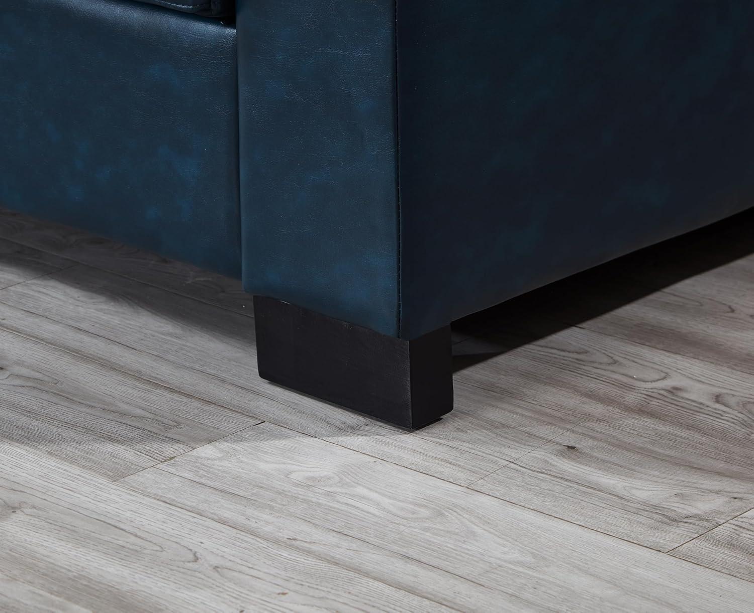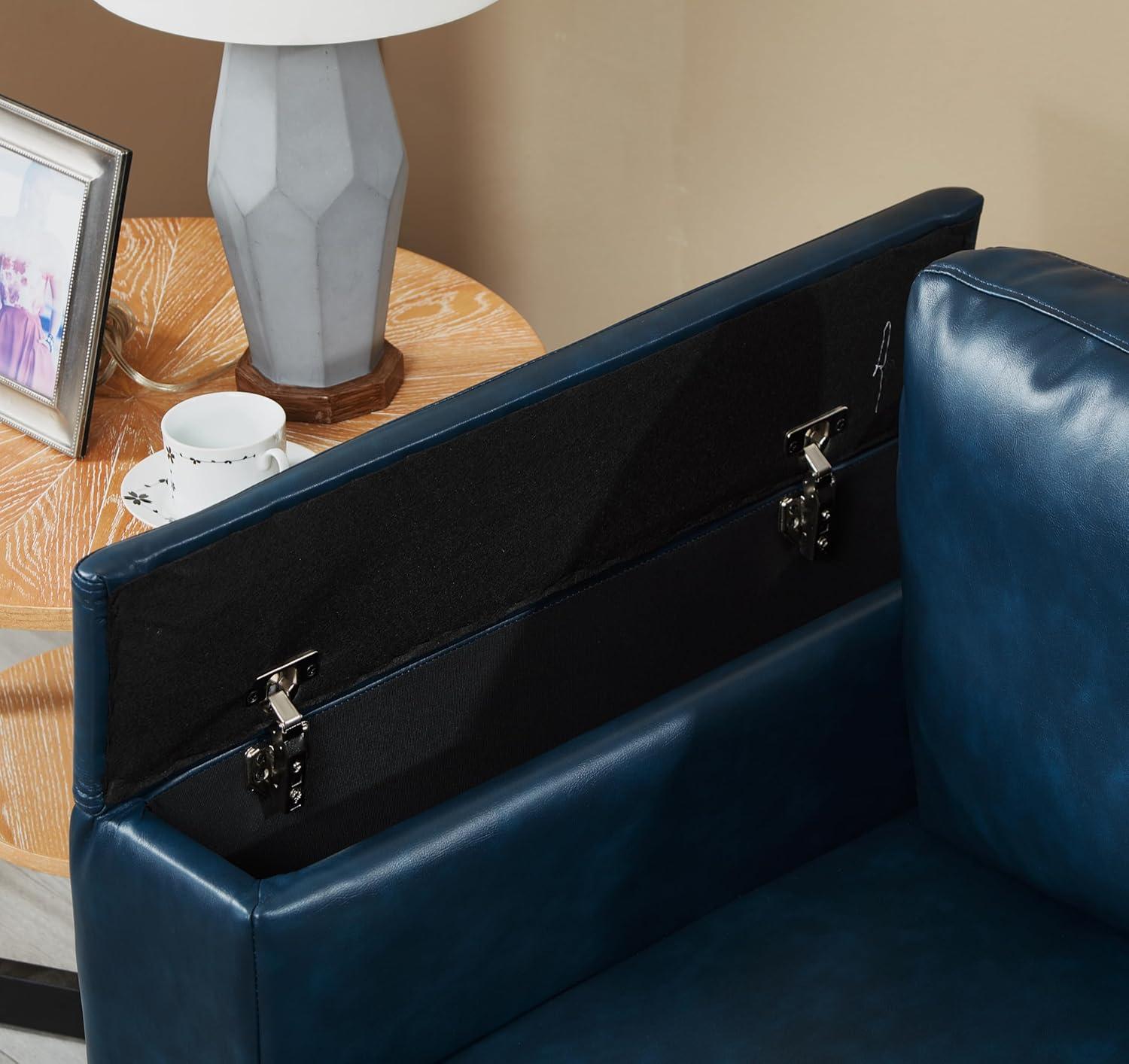 Busy individuals and pet owners will find the premium navy blue PU leather upholstery particularly favorable. It is not only sleek and modern but also incredibly easy to clean and resistant to stains, helping maintain a polished look with minimal effort.The robust wood and metal frame paired with stylish square arms ensure durability without compromising on elegant design. Plus, assembly is straightforward, so you can enjoy your new centerpiece without hassle.