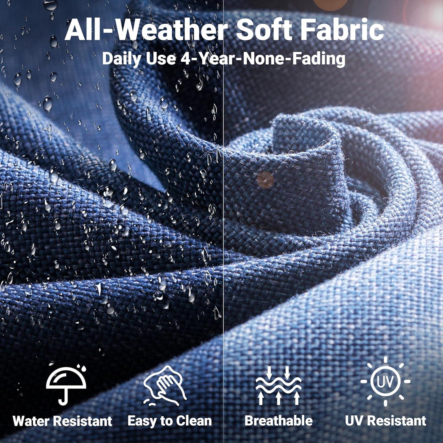 We immediately noticed how the denim blue cushions elevate both the comfort and aesthetics of this outdoor set. With a thickness of 3.54 inches, they offer plush support that’s perfect for lounging through long afternoons. The high-density foam provides remarkable resilience, so the cushions bounce back easily after use, maintaining their cozy feel day after day. Additionally,the zippered covers make cleaning simple and stress-free,which is a big plus for outdoor furniture exposed to the elements.