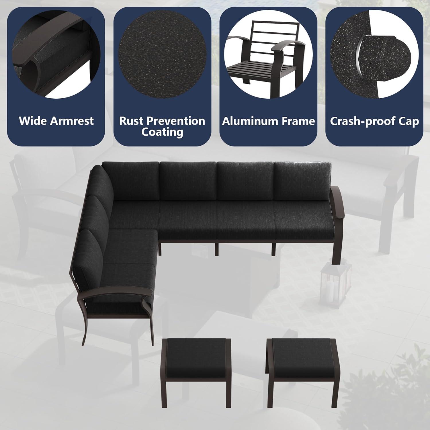 Our time with this patio furniture set has been a blend of comfort, style, and practicality. The all-aluminum frame impressed us with its robustness and corrosion resistance, perfectly suited for both indoor and outdoor use. Assembly was straightforward thanks to the minimal screw design, which saved us a lot of time and frustration. The dark grey finish adds a sleek, modern touch that complements any backyard or patio setup without appearing too flashy. The variety of seating-ranging from a six-seat corner sofa to swivel rocking chairs-offers versatile arrangements for gatherings, allowing us to easily rearrange for different occasions and guest counts.