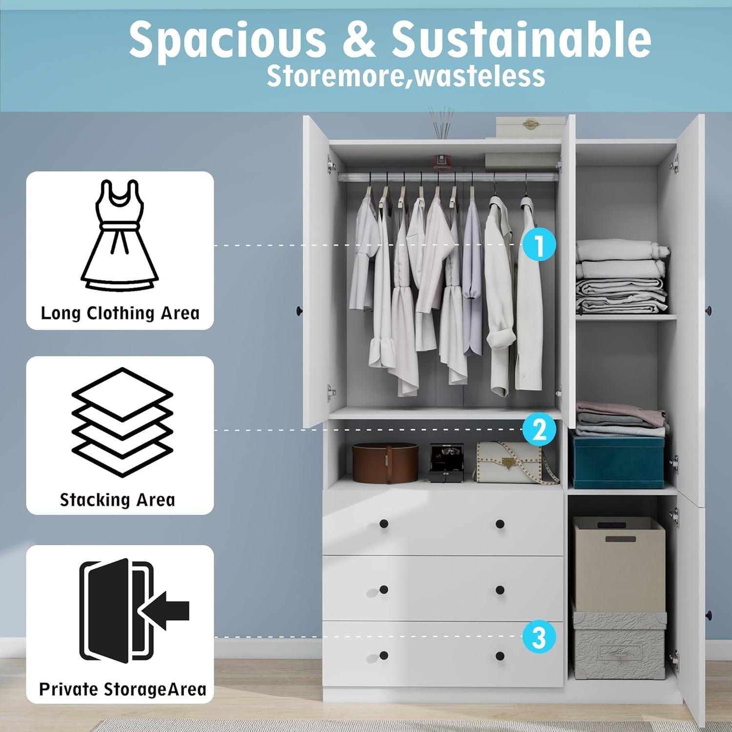 | Storage Capacity | 3 Doors, 3 Drawers, Hanging Rod | 9/10 |