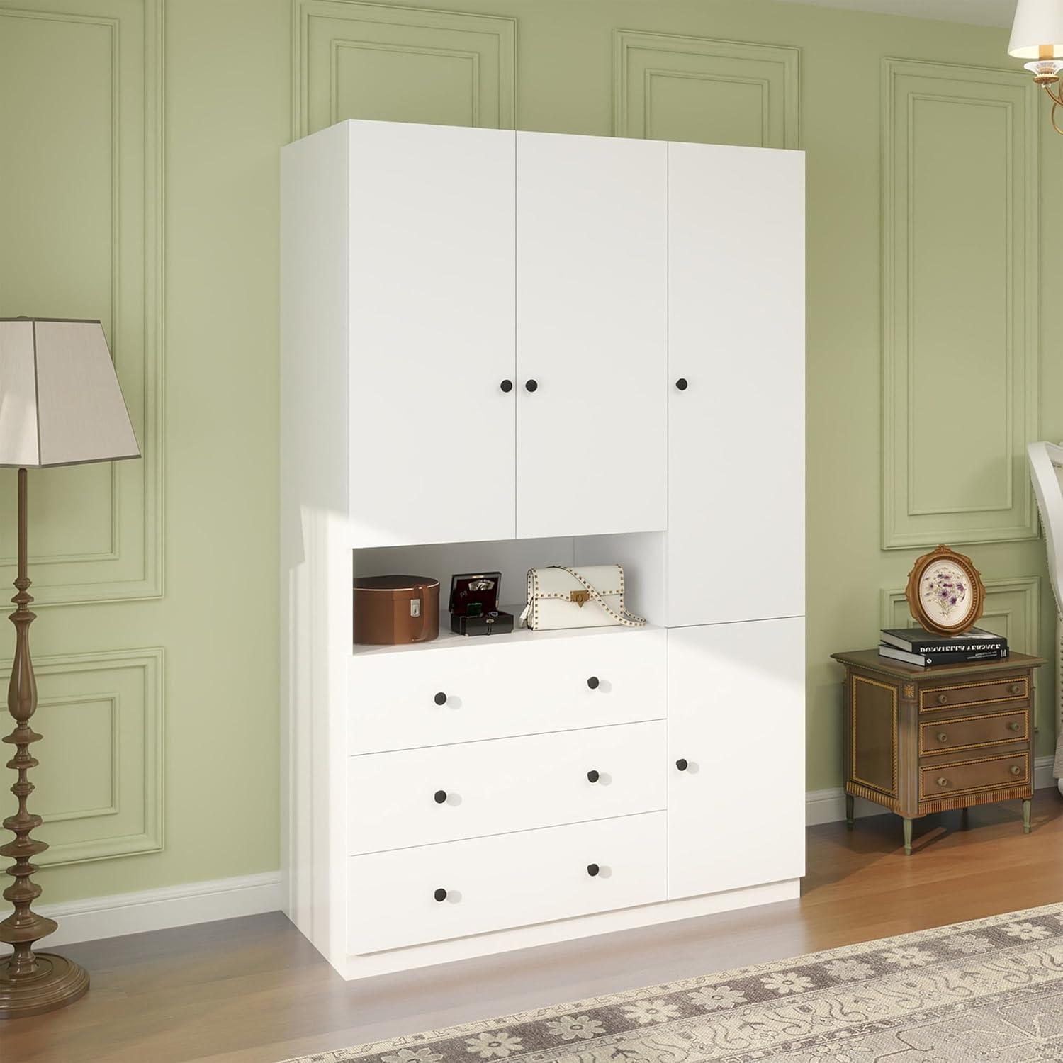 | Generous storage: 3 doors plus 3 drawers provide versatile space for folded clothes and hanging garments. | Assembly requires time and patience; instructions are clear but the process can be lengthy for one person. |