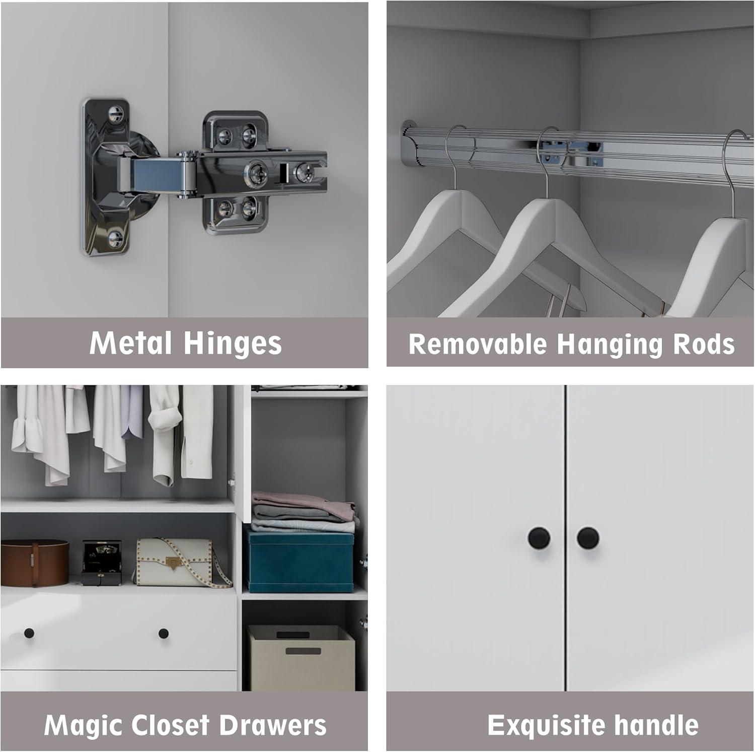| Includes clear instructions and all necessary hardware for assembly. | Lack of built-in lighting inside the wardrobe may require additional lighting solutions for better visibility. |