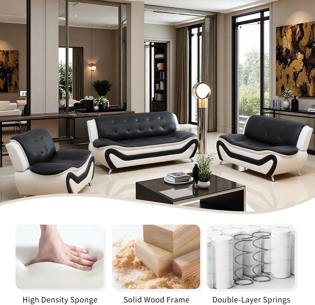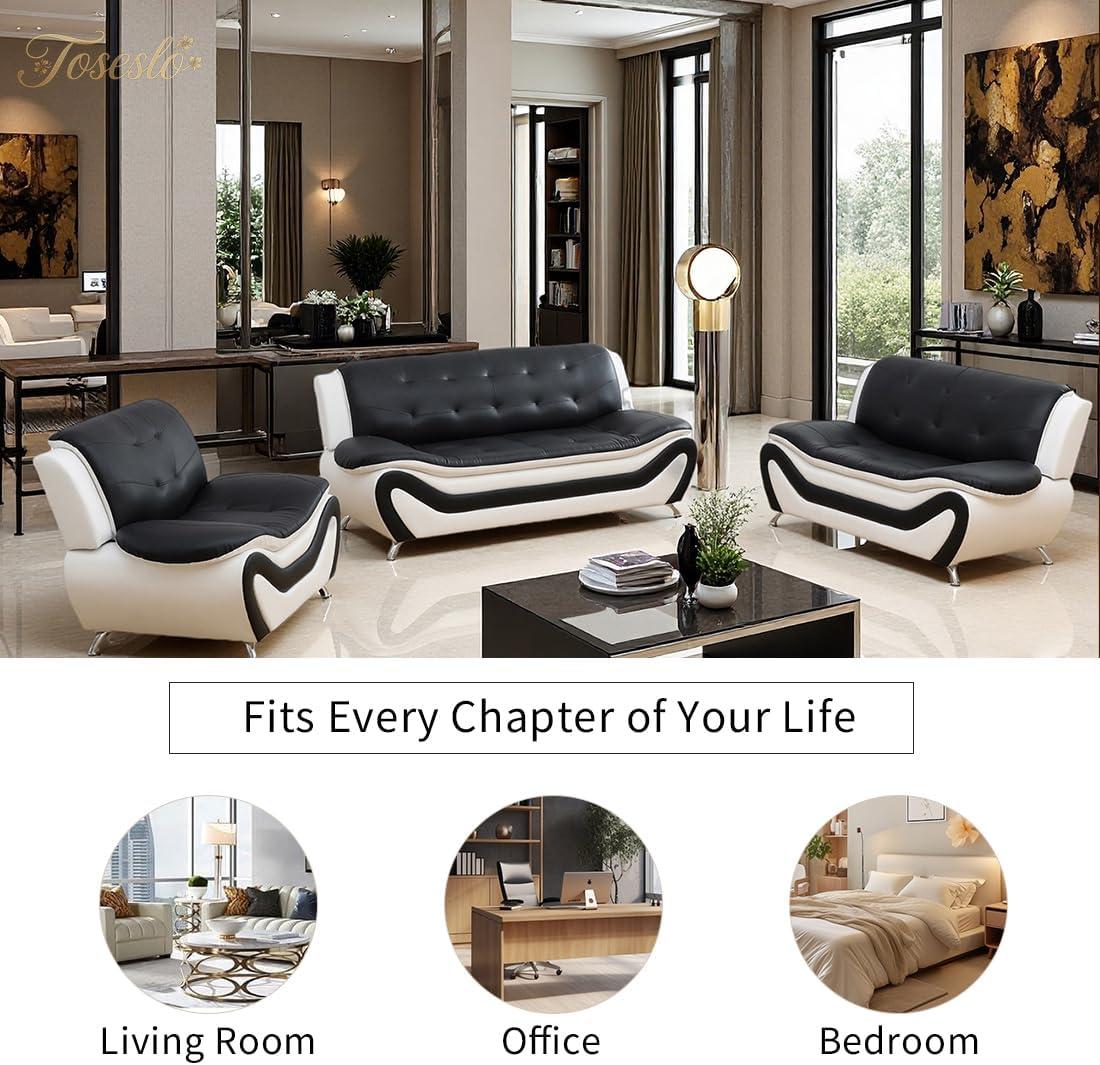 this set is ideal for those who value both style and practicality in compact spaces. If you live in an apartment, work from home, or are looking to furnish a bedroom lounge or office waiting area, the sleek black and white faux leather sofa set fits perfectly. Its modern design complements minimalist or contemporary interiors, while the easy-to-clean surface makes it a favorite for busy households or professional environments where spills or dirt are a concern.