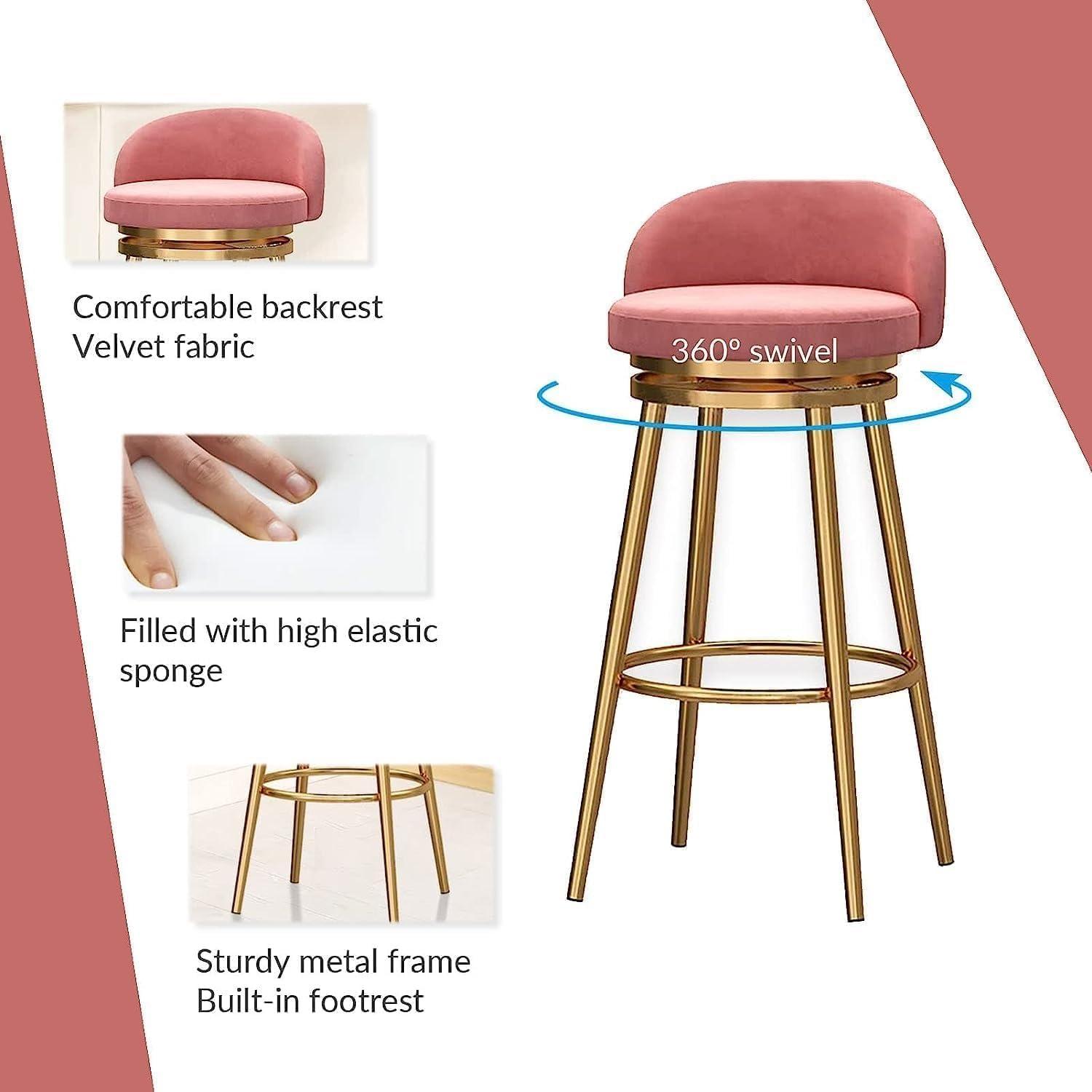 | Elegant & Modern Design The soft roze velvet upholstery paired with the sleek gold metal frame instantly elevates the look of any kitchen or bar area. They blend cozy vibes with a trendy aesthetic. |