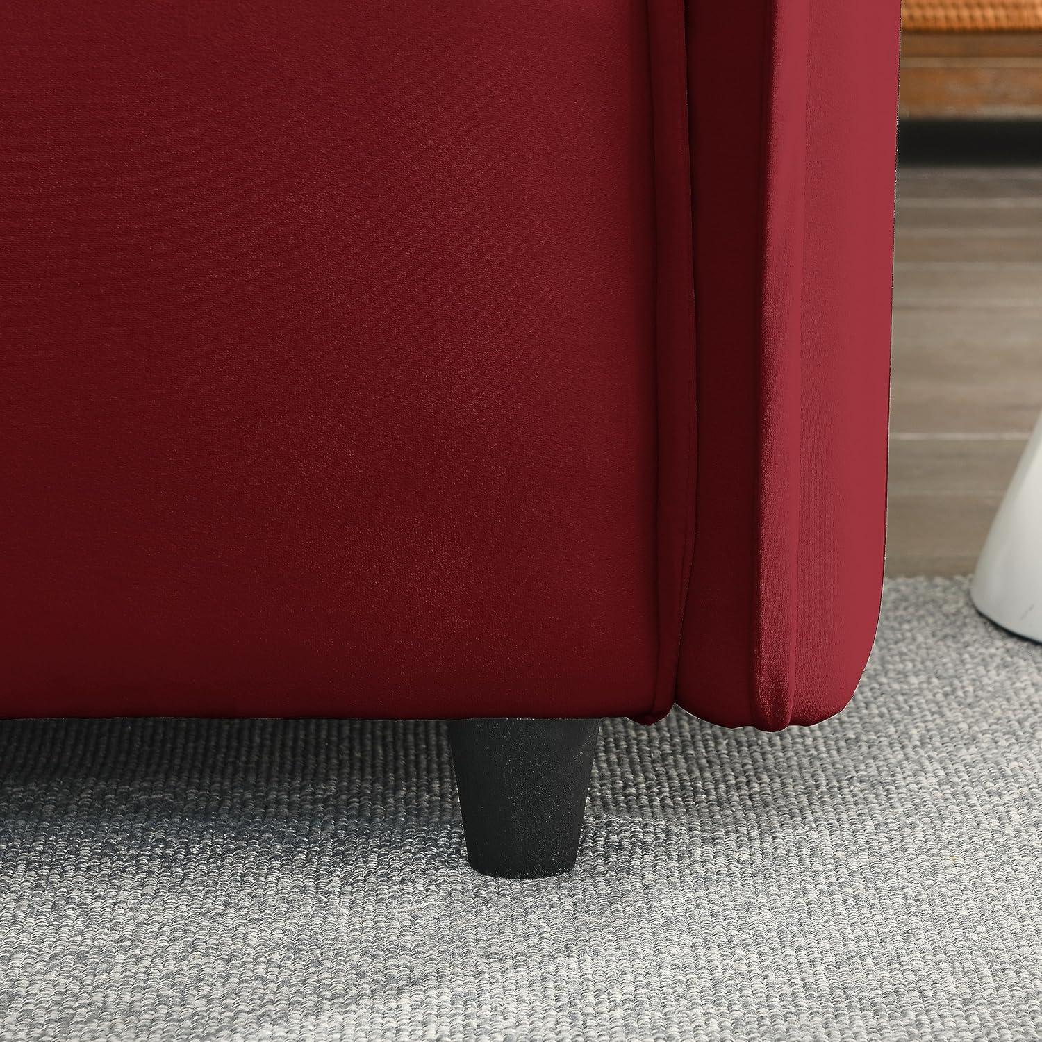 Besides the robust frame, the upholstery embraces a plush velvet fabric that is remarkably soft to the touch and breathable, offering a cozy lounging experience. High-density foam padding fills the cushions, striking the perfect balance between softness and support – as if you’re sinking into a cloud each time you sit. The velvet also proves relatively easy to clean, maintaining its vibrant red color and elegant appearance over time. Below is a quick overview of the key durability features we found noteworthy: