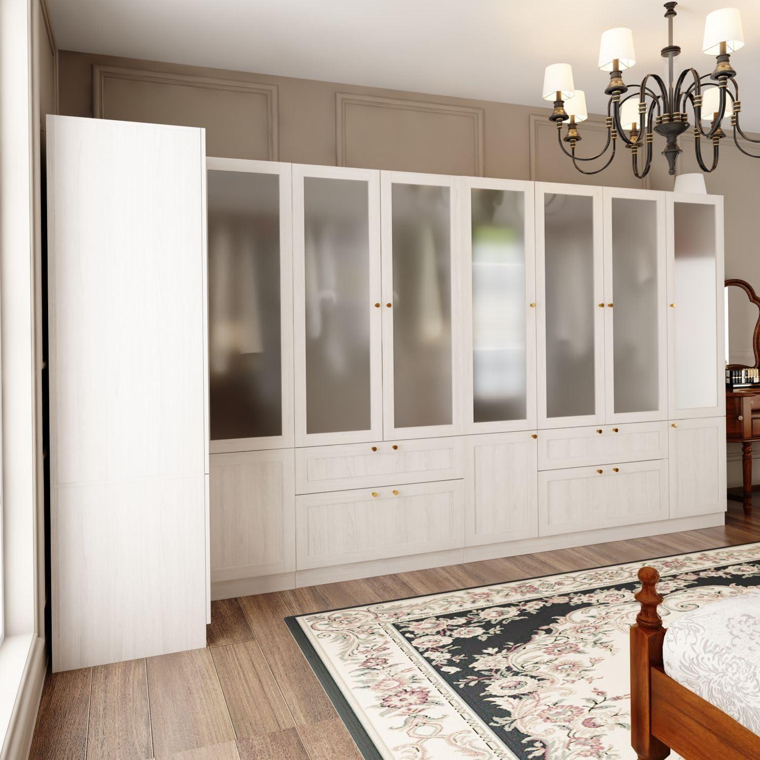 the frosted glass doors transform the closet from just a storage unit into a stylish accent that harmonizes function with aesthetic appeal. We highly recommend exploring this wardrobe system to refresh your bedroom with a sleek, inviting touch.