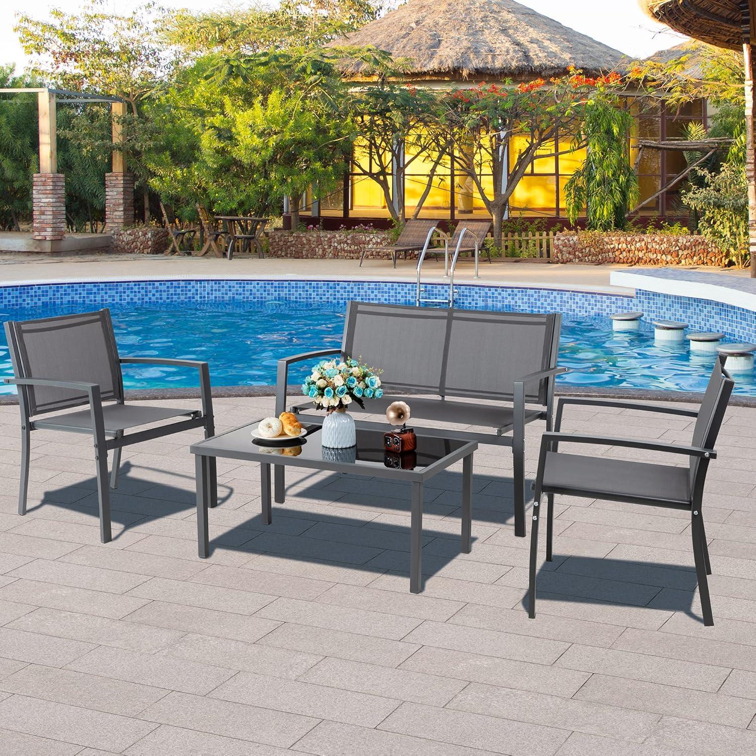 When it comes to⁣ maximizing our outdoor​ space without sacrificing comfort, this 4-piece set truly shines. Each piece ‌is designed with sleek, modern lines and compact dimensions that fit perfectly into smaller patios or balconies. The loveseat and chairs nestle comfortably without crowding, while the glass coffee table offers enough surface area for drinks and snacks without‌ overwhelming the space. What’s great is that despite the set’s lightweight feel, thanks to⁤ the powder-coated steel⁢ and textilene fabric construction, it remains sturdy and durable-a⁢ perfect combination for those of us ⁣with limited room who still want a stylish and functional⁤ setup.