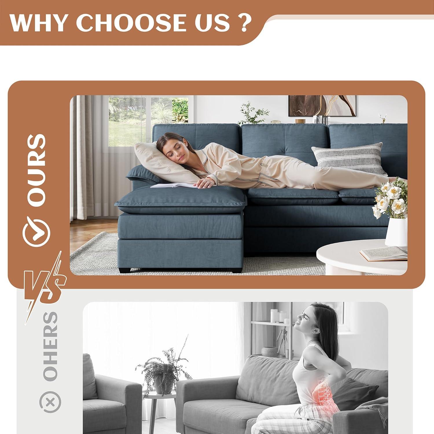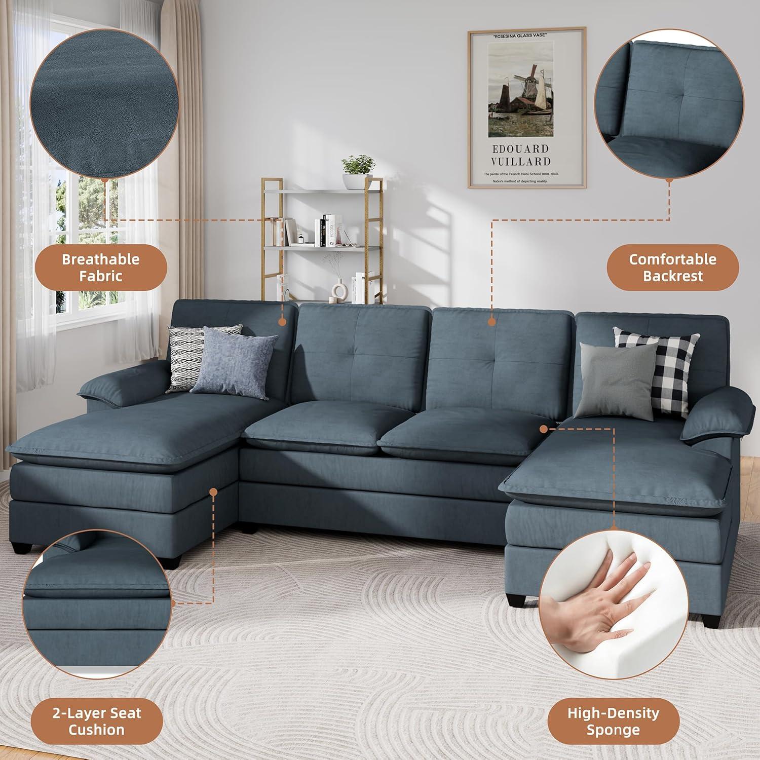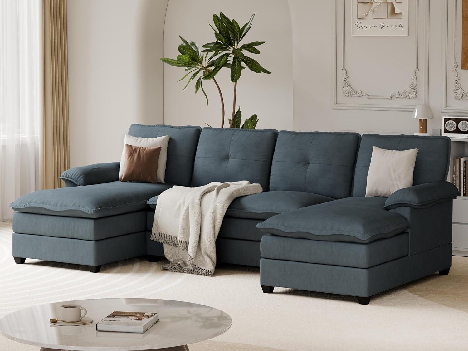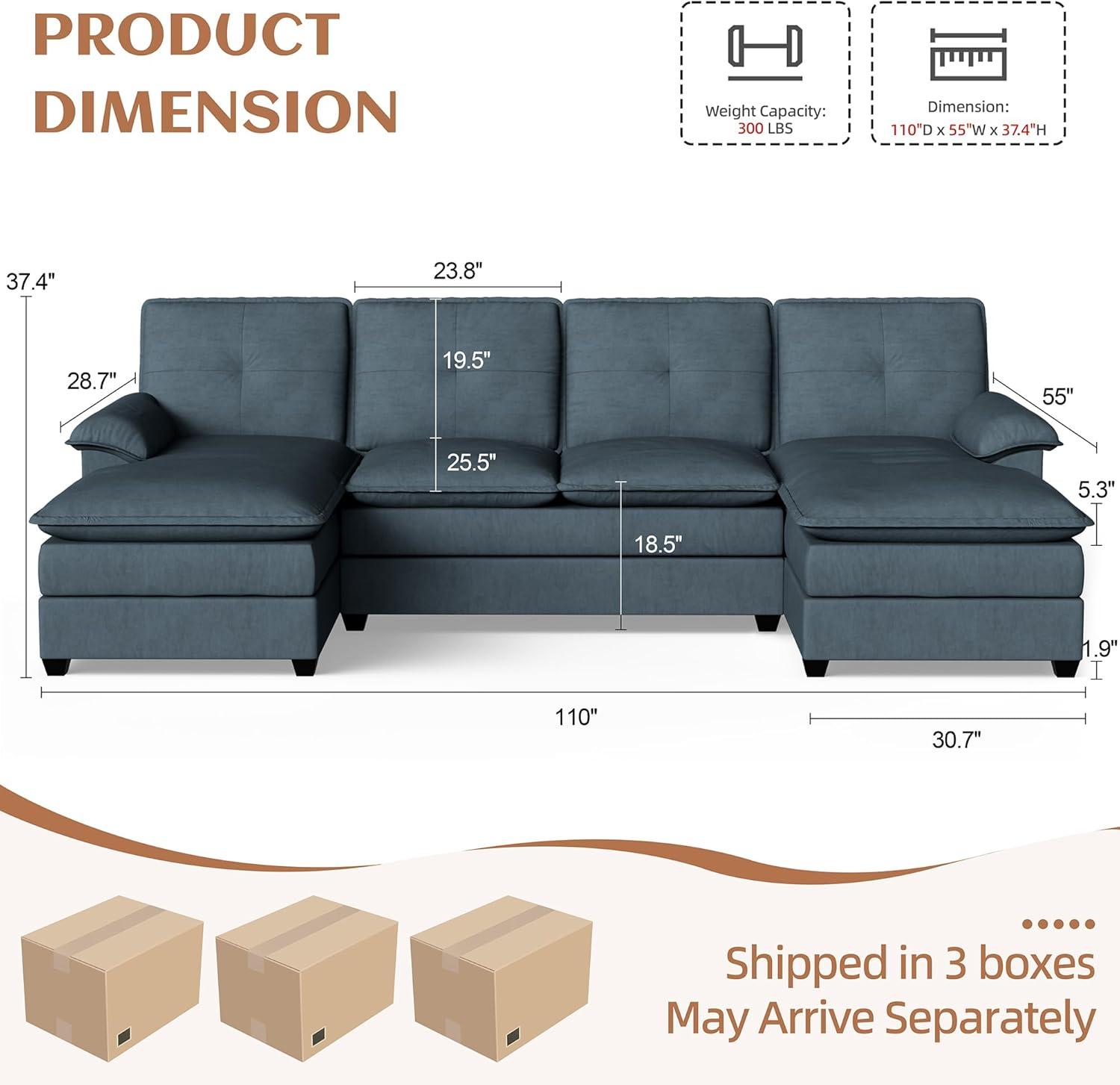 Our experience with this U-shaped sectional has been largely positive, blending both style and practicality into one cohesive piece. Right from the start, the assembling process proved straightforward despite the sofa arriving in multiple boxes; the included instructions were clear and all parts, including cleverly hidden legs, were accounted for.The couch’s solid wood frame ensures robust support while the double-layer cushions-filled with sponge, foam, and spring packs-offer a uniquely firm yet cloud-like seating sensation. Its 110-inch length provides ample space to stretch out or gather comfortably with family and friends, making it a versatile choice for anything from compact apartments to larger living rooms.