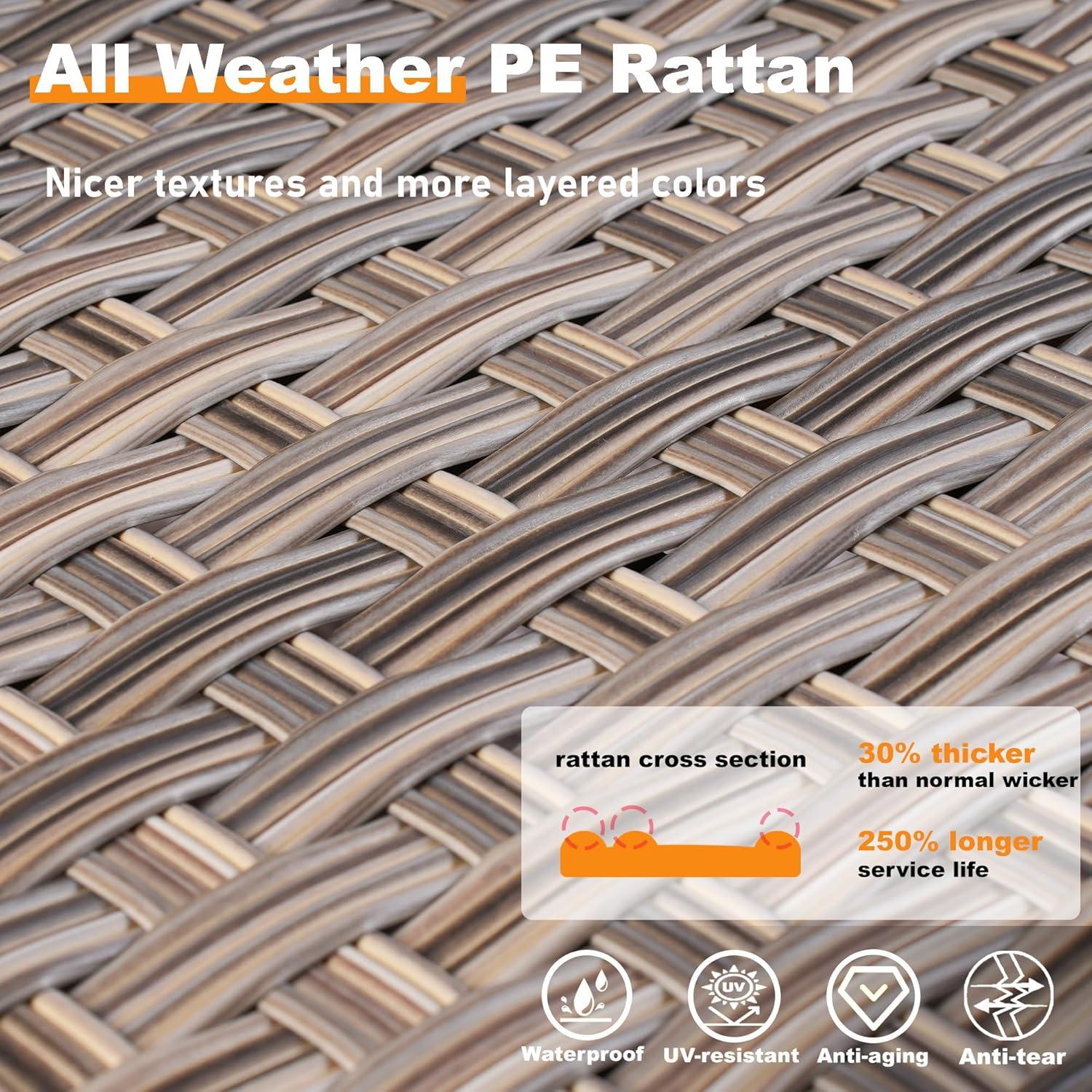 We’ve put this outdoor furniture set through various weather challenges, and it consistently performs at a high level. The hand-woven PE rattan is not only elegant but also remarkably resilient against rain and sun exposure. Thanks to its lightweight yet sturdy steel frame,which is powder-coated to prevent rust and corrosion,the structure remains solid through changing seasons without any signs of wear or weakness. Each seat’s impressive weight capacity of up to 354 pounds ensures that durability is built right into the design, letting us relax and entertain with confidence.