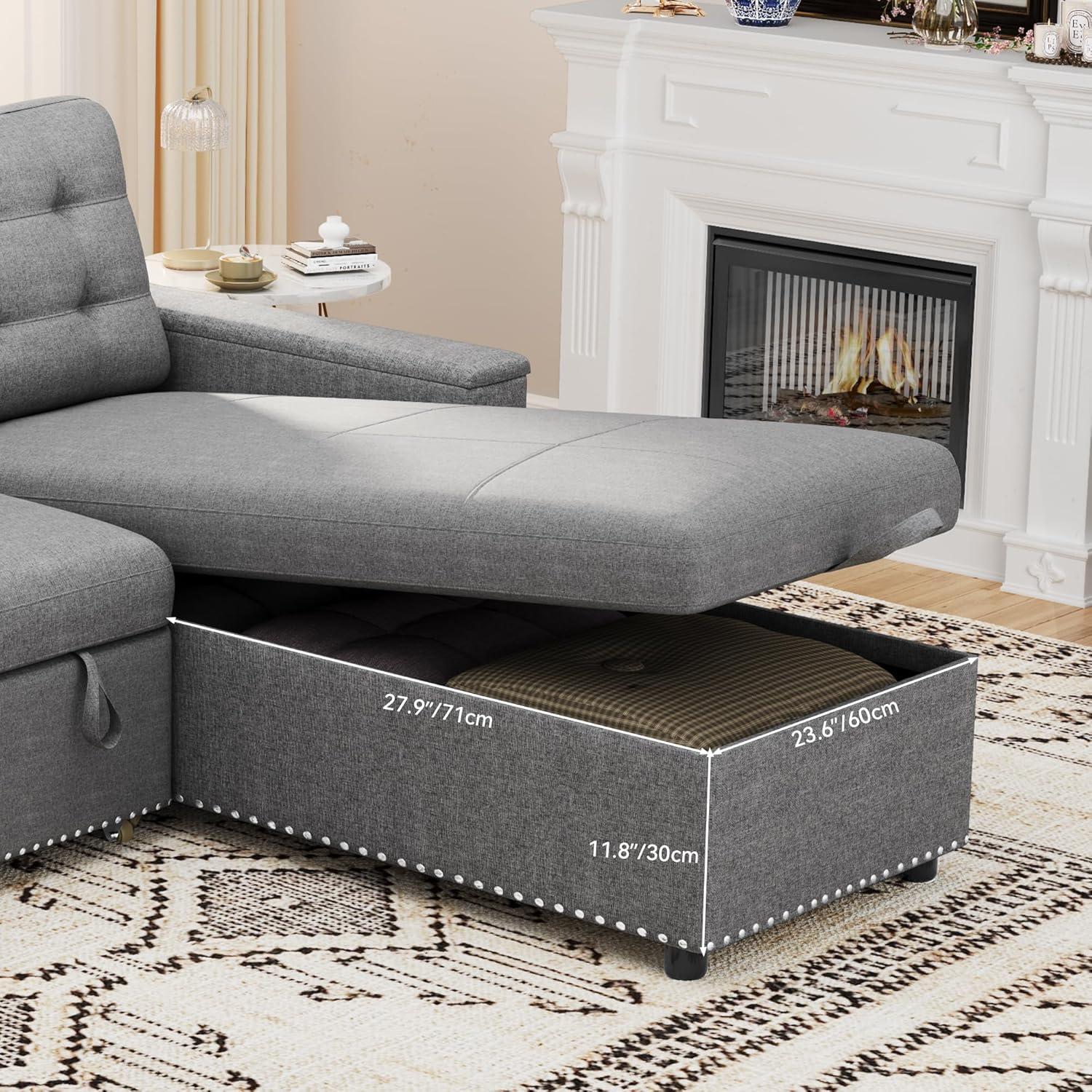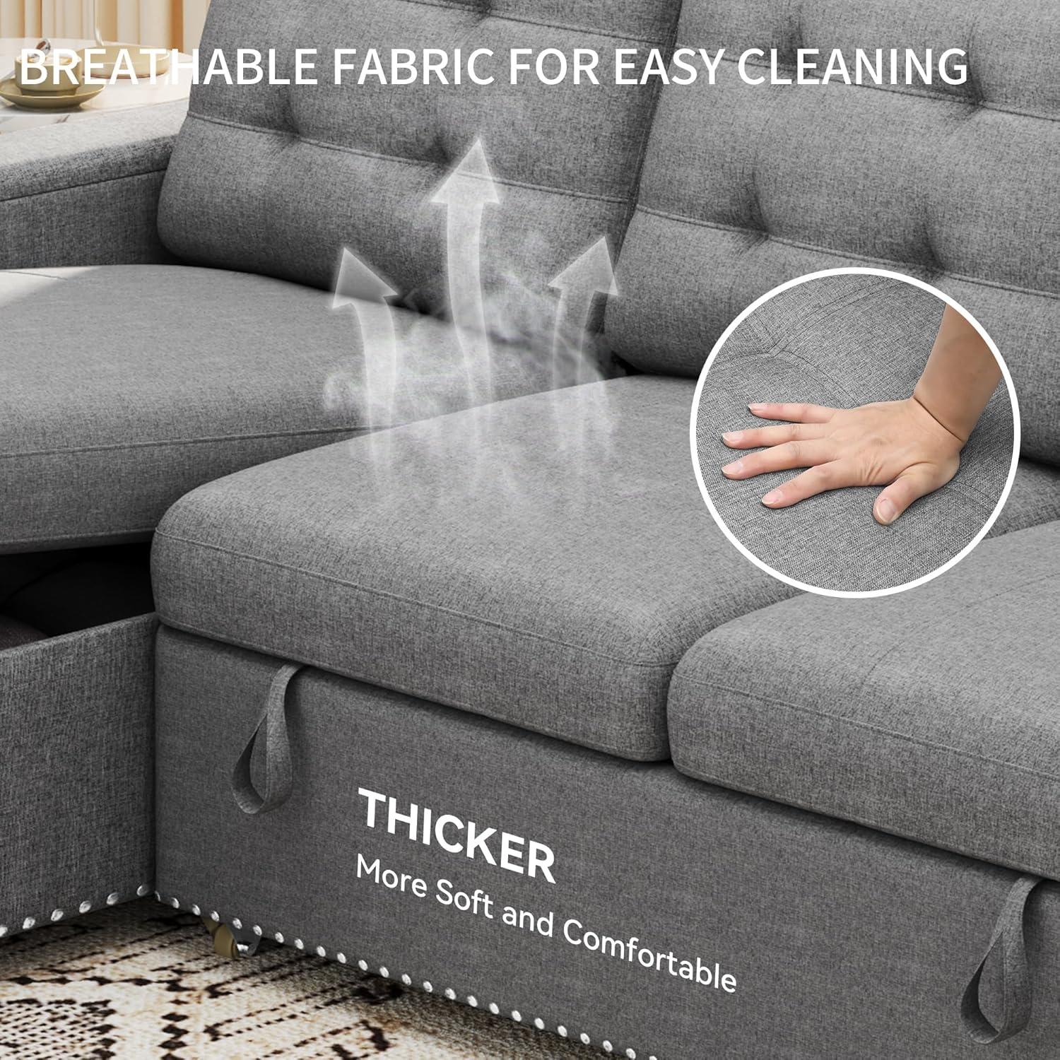 The modern, dark‌ gray fabric ‍of ‍this L-shaped sleeper sofa melds effortlessly ⁤with our ‍living room décor, ‍bringing a sleek, understated elegance without overwhelming the space. Its clean lines ⁣and‌ versatile​ reversible chaise allow us to customize the layout to suit our room’s flow and activities. What really stands out is the smart integration of hidden storage compartments within the chaise-three discrete spaces perfect for stowing away blankets, pillows, or books, keeping the room tidy without sacrificing style.