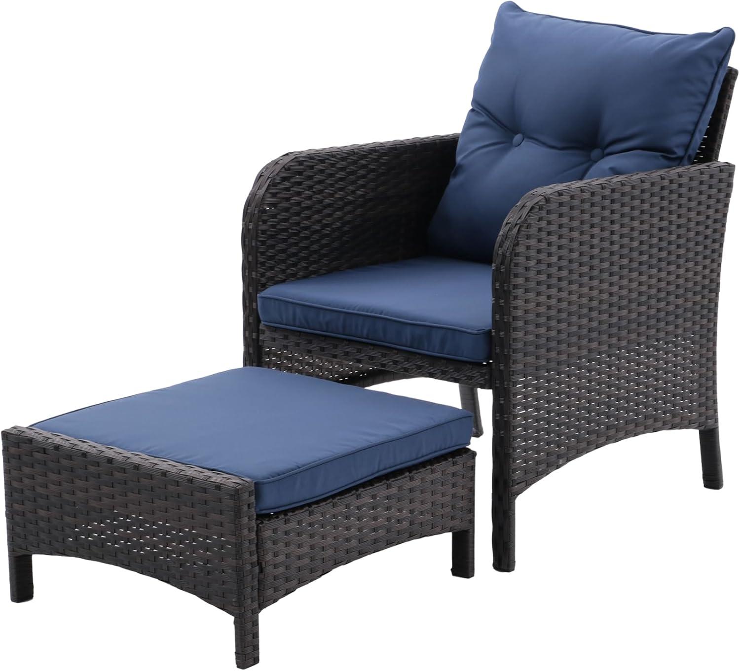 This patio furniture set is ideal for those who value comfort without sacrificing style. If you have a balcony, backyard, porch, or garden where space is limited but you still want a cozy outdoor retreat, this set offers the perfect balance between functionality and elegance. The spacious chairs with thick,removable cushions provide plush seating for relaxing with a cup of coffee or engaging in conversation with friends. Plus, the ottomans tuck neatly under the chairs to maximize usable space, making it an excellent choice for small outdoor areas looking to maintain an uncluttered feel.