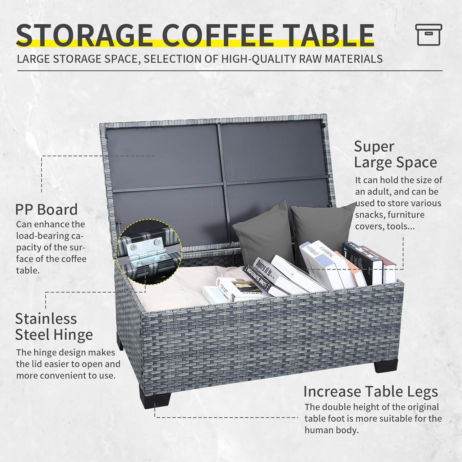 One of the standout features of this outdoor set is undoubtedly the storage table, which perfectly balances style and utility. The table’s integrated compartment offers a generous space to stow away cushions, blankets, or even outdoor games, helping us keep our patio tidy without sacrificing convenience. Its sturdy construction, paired with the rust-resistant steel frame and all-weather PE wicker, guarantees durability against the elements, making it a practical choice for year-round use. Additionally, the elevated height of the sofa feet complements the table’s design, allowing for easy access and a comfortable lounging experience.