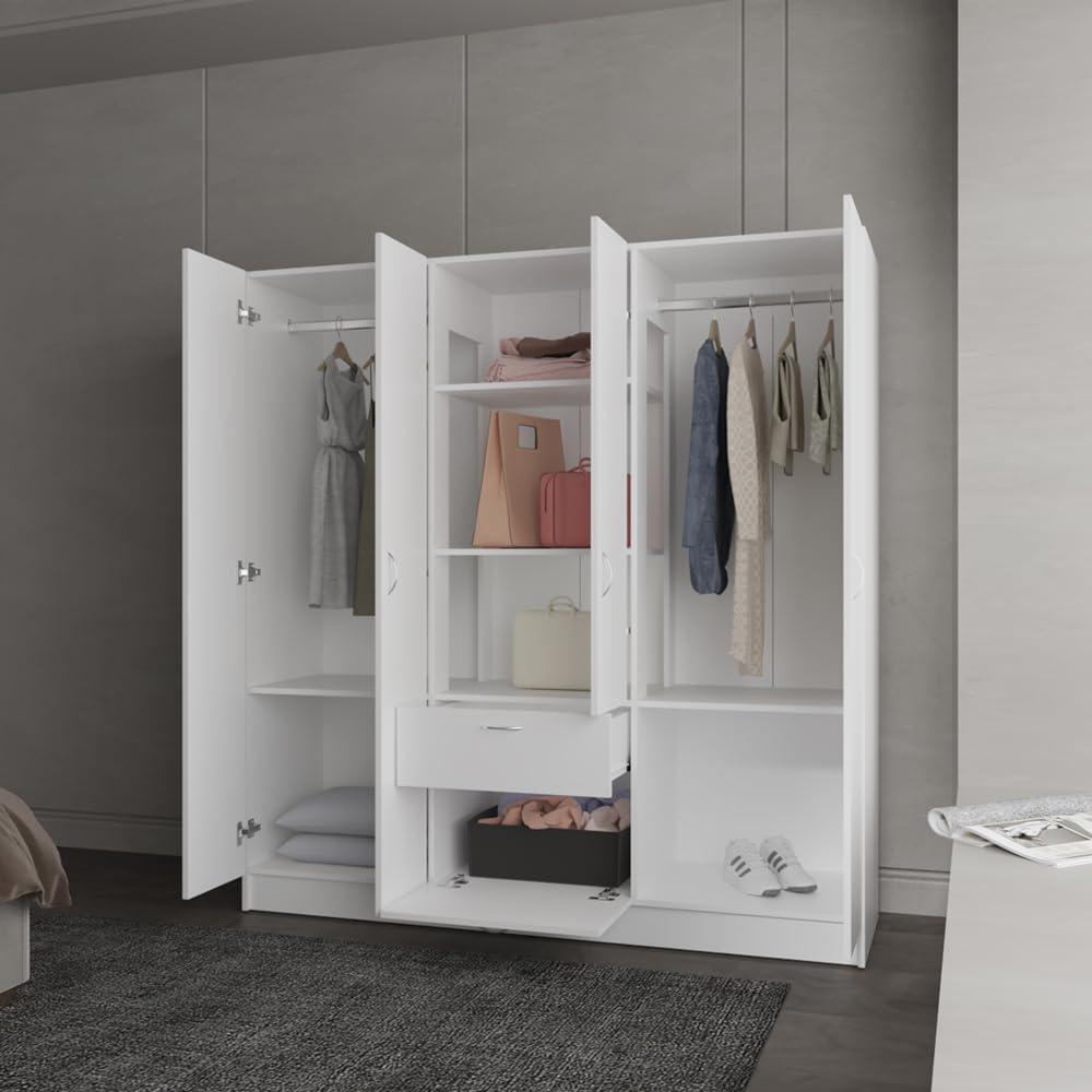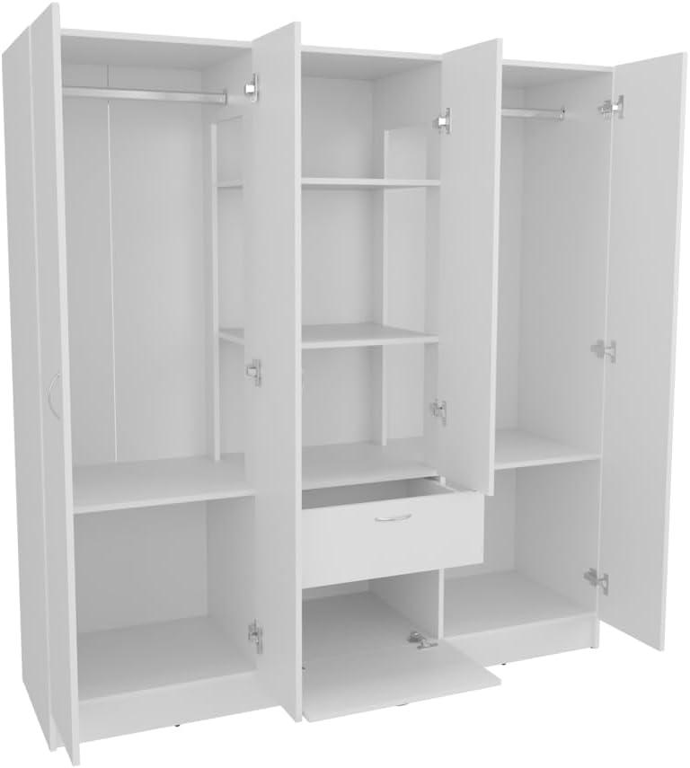 Beyond stability, the material choice and surface finishing contribute to a sleek, modern aesthetic without compromising function. The smooth white finish is both elegant and practical, resisting scratches and stains typical with daily bedroom use.Inside, six well-proportioned doors open to reveal a thoughtful arrangement of compartments and shelves, all built with the same sturdy materials to support various storage needs effortlessly. Here’s a quick breakdown of key build features: