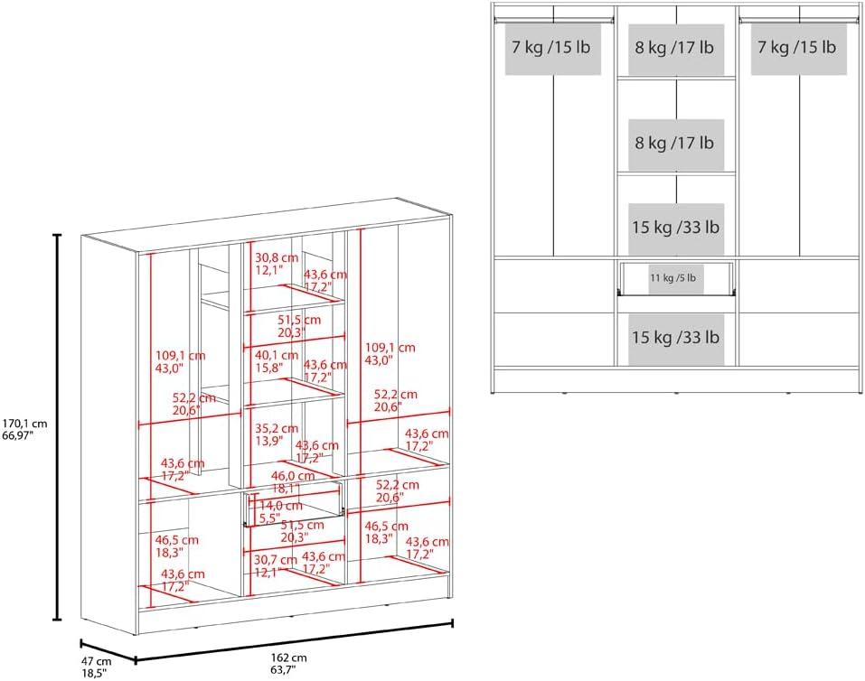 | 18.5″ x 63.7″ x 66.97″ Dimensions | Maximized storage without crowding |