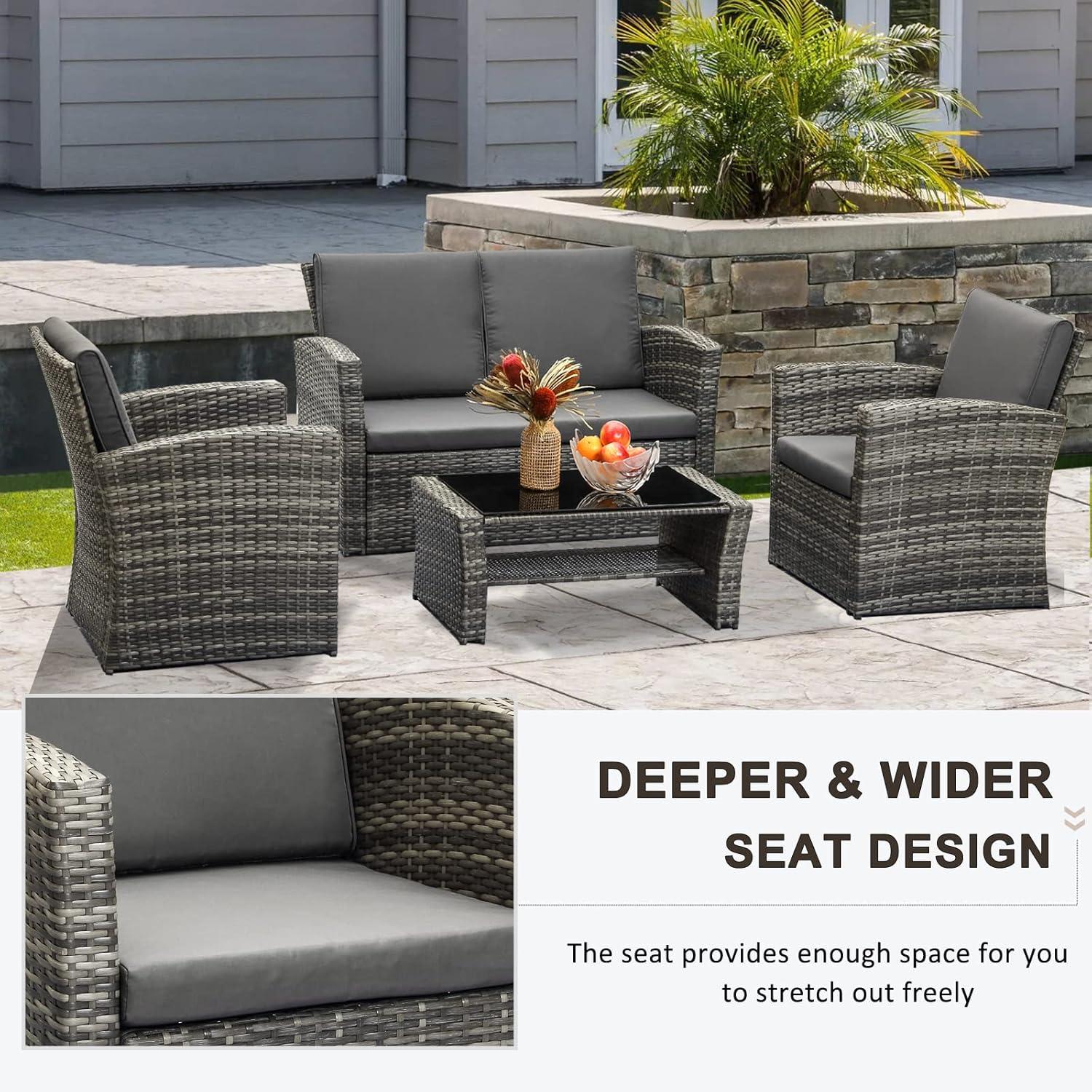 When it comes to elevating‍ our outdoor seating area, this four-piece arrangement truly stands out with its elegant U-shaped layout that encourages ⁤conversation and togetherness. ‍The beige⁢ all-weather wicker ‍weaves effortlessly blend⁤ natural charm with contemporary style, making​ it a seamless fit for various outdoor décors. Its spacious⁣ design comfortably accommodates up to four‍ people, perfect for intimate family moments or lively social gatherings. The supportive backrests paired with thick cushions ⁤invite us to sink in and relax, creating a cozy retreat right in our ‌backyard.