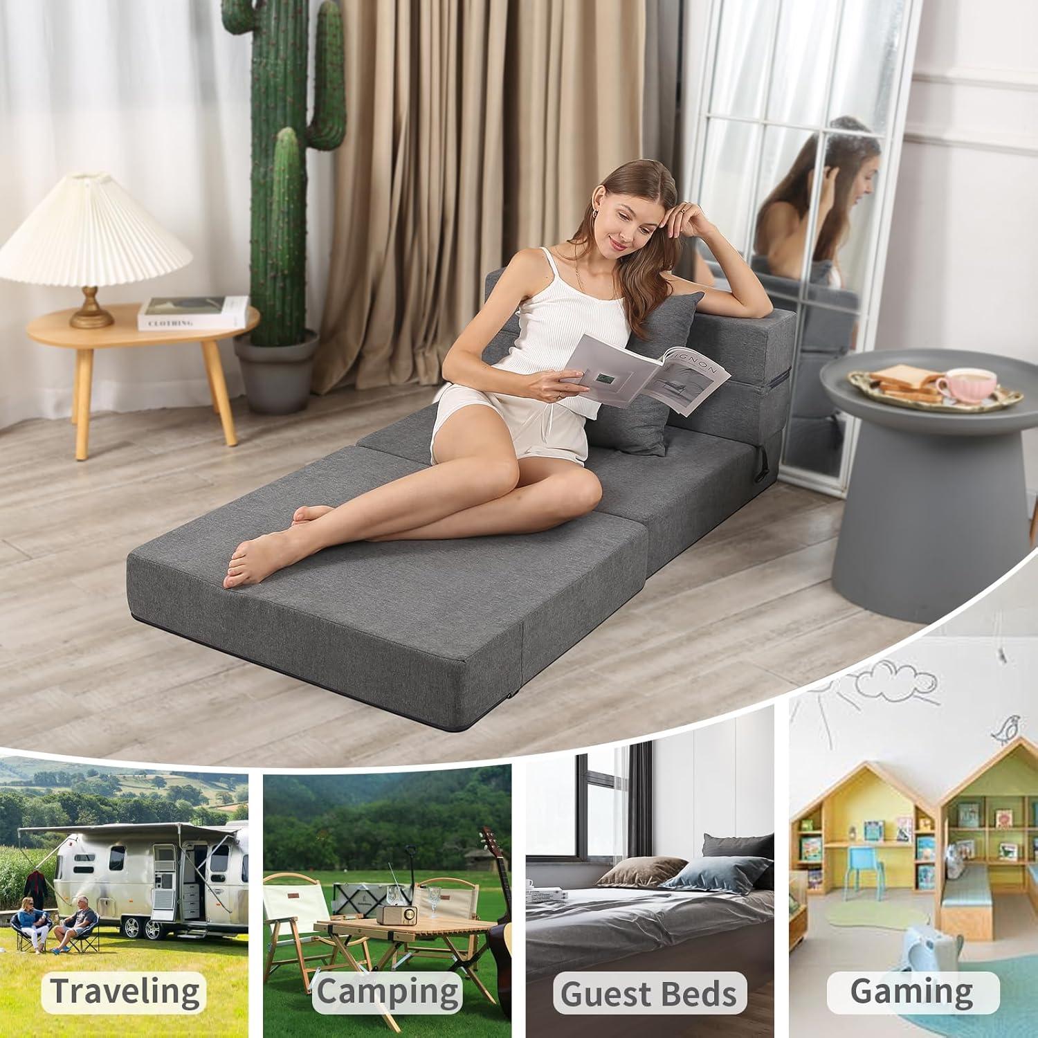 After putting this versatile folding sofa bed through its paces, we find it to be a standout option for anyone needing a practical space-saving solution without compromising on comfort. The high-density memory foam offers firm yet supportive seating and sleeping surfaces that many users have praised for comfort and durability. The dark grey fabric is appealing and modern, blending well with most decor styles, while the included fluffy pillow adds an extra touch of coziness. Its lightweight design and easy foldability make it ideal for guest rooms, small apartments, dorms, or even camping trips, transforming effortlessly between a couch and a bed.
