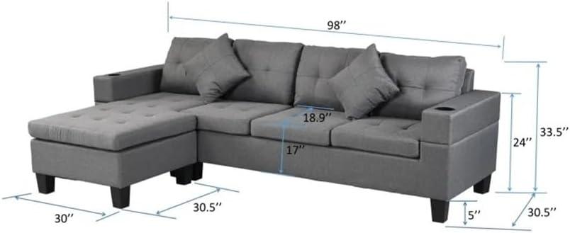 After spending time with this sectional sofa set,we appreciate the thoughtful balance between style and functionality it offers. The option to choose a left or right hand chaise allows for excellent customization to fit different living room layouts. Upholstered in soft linen fabric with thick foam cushions,it provides a cozy seating experience without sacrificing sophistication. The built-in cup holders are a practical addition, perfect for keeping beverages within easy reach during movie nights or casual gatherings. The included throw pillows add a subtle decorative touch, rounding out the ensemble nicely.