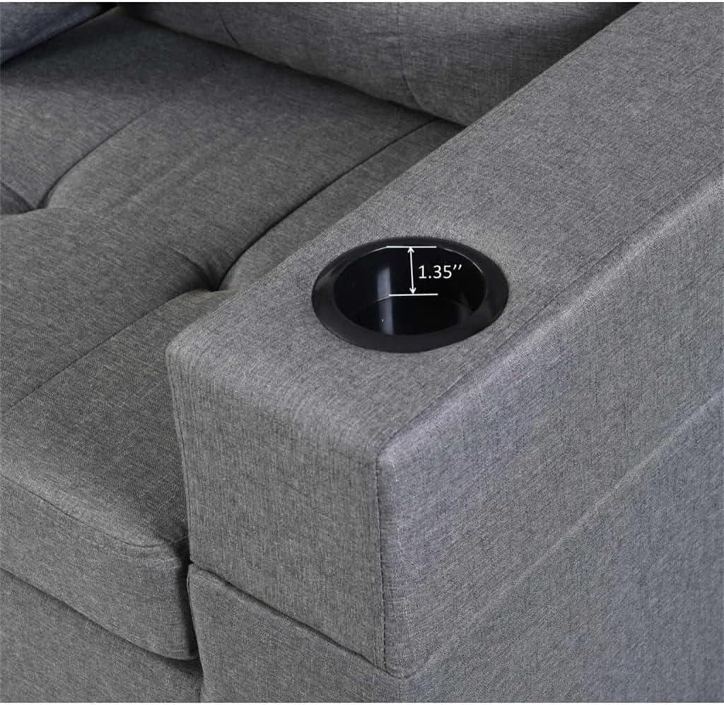 Elegantly tailored in soft linen fabric, this sectional masterfully blends modern sophistication with everyday comfort. Its understated gray tone effortlessly complements a variety of interior palettes, while the plush cushions, generously padded with thick foam, invite us to sink in after a long day. The option to choose a left or right-hand chaise means we can customize the layout to perfectly fit our living room’s shape,turning any corner into a cozy retreat. Plus, the inclusion of two sleek cup holders integrates functionality directly into the design, making relaxation even more convenient.