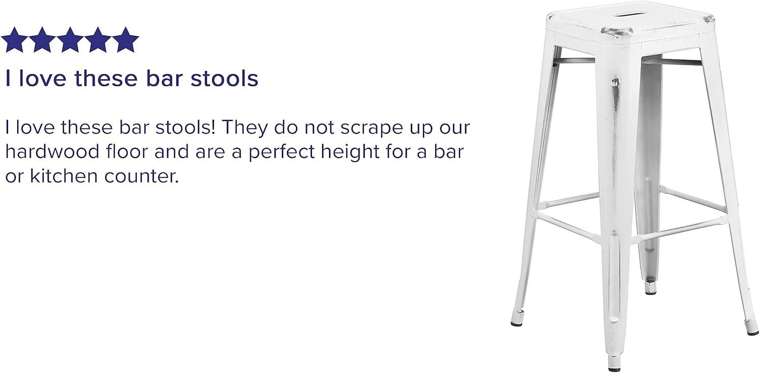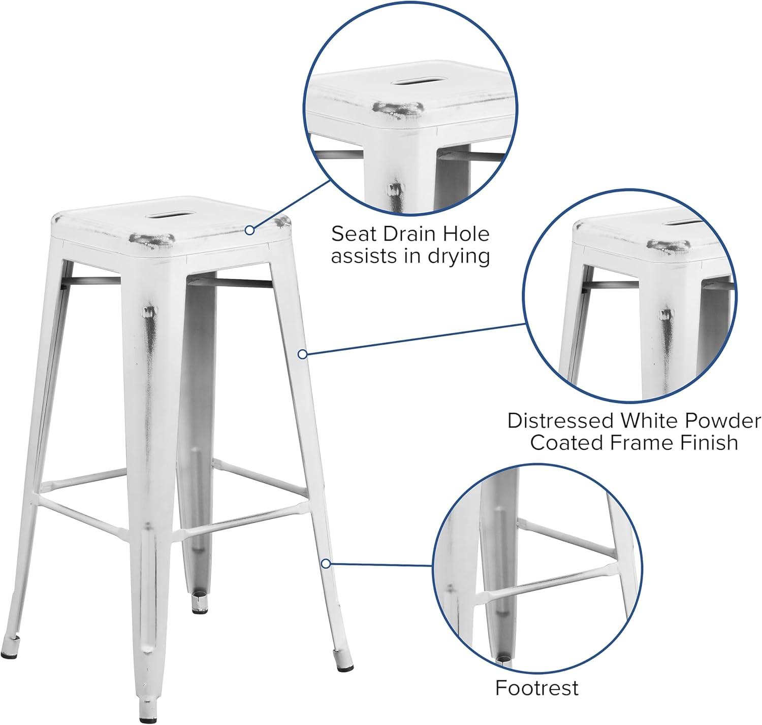the Flash Furniture Kai Commercial Grade 4 pack 30″ High Backless Distressed White Metal Indoor-Outdoor Barstools strike a remarkable balance between style, durability, and practicality. Their versatile design makes them an excellent fit for a variety of settings-from cozy home kitchens and dorm rooms to bustling patios and commercial spaces.The ability to stack up to 10 stools high and features like seat drains and plastic bumper guards highlight thoughtful touches that enhance both convenience and longevity. Whether you’re aiming for an industrial edge or a farmhouse vibe, these stools bring both character and comfort to the table with minimal fuss.If you’re looking for a space-saving, sturdy, and stylish seating solution that can keep up with everyday use, this set definitely deserves a spot on your shopping list. Ready to transform your seating arrangements with these versatile barstools?