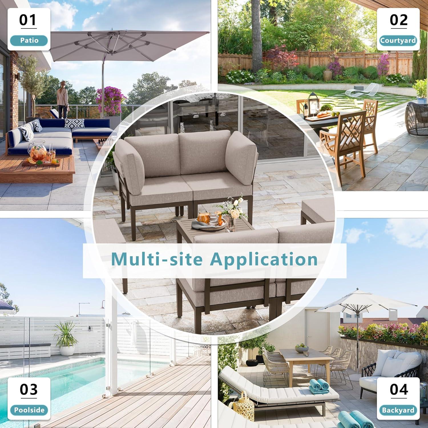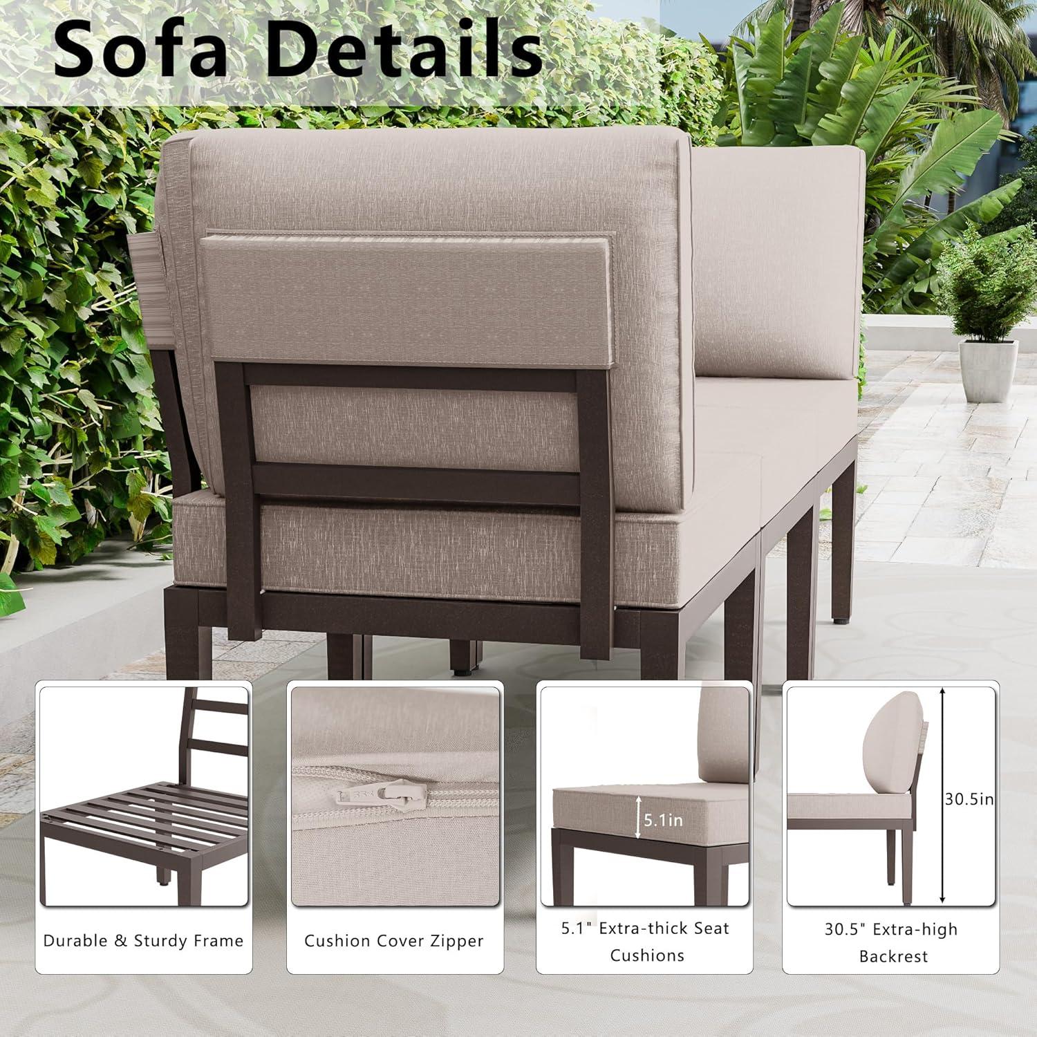 After spending considerable time evaluating the entire set,we appreciate how it strikes a fine balance between durability,comfort,and versatility. The premium metal frame offers excellent weather resistance, ensuring long-term use without worrying about rust or structural wear. The modular design truly shines, allowing you to rearrange the pieces effortlessly to fit various spaces-from a cozy porch corner to a sprawling backyard gathering area. Plus, the 5.1-inch thick cushions soaked in high-resilience foam deliver a plush seating experience, enhanced further by splash-proof, removable covers that make maintenance easy and hassle-free.