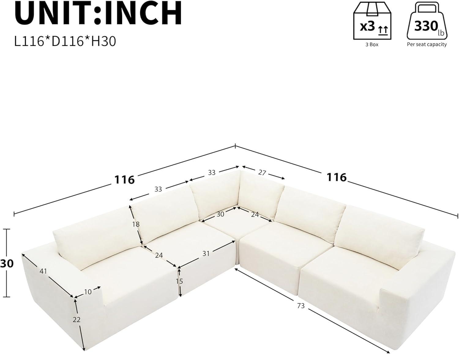 the 116×116 5 Seater L Shaped terry Cloth Modular Sofa strikes a thoughtful balance between comfort, style, and versatility. Its plush terrycloth fabric and supportive foam cushions invite you to sink in and stay awhile, whether you’re hosting a lively gathering or enjoying a quiet evening.With no assembly required and the freedom to rearrange its modular pieces at will, it adapts effortlessly to your living space and lifestyle. While the multiple-box delivery might require a bit of patience, the payoff is a spacious, luxurious floor couch that feels tailor-made for your home.