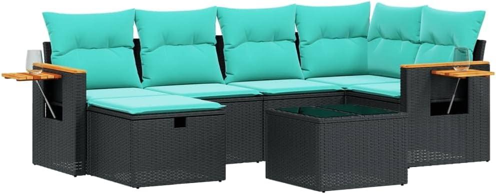 Explore the 7-Piece Black Poly Rattan Patio Sofa Set on Amazon
